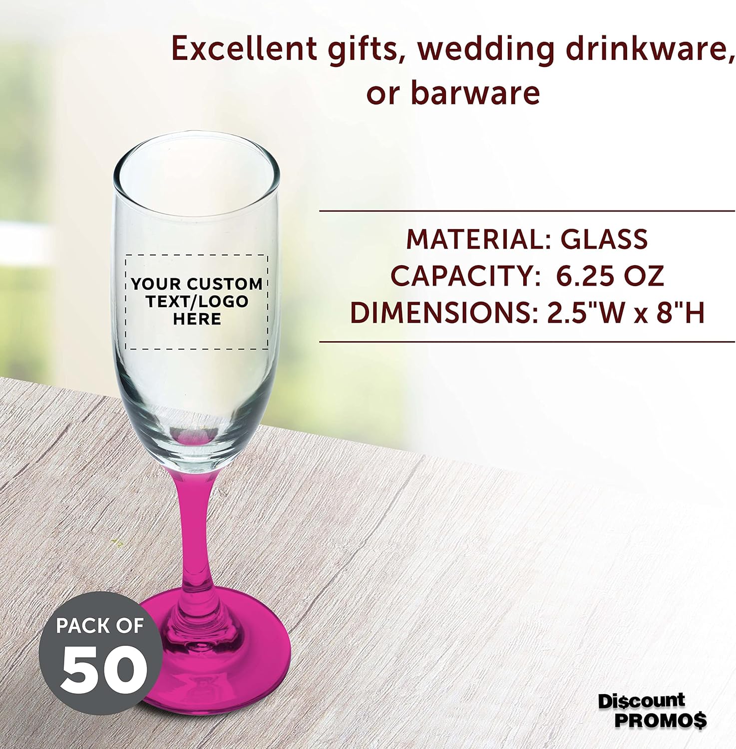 DISCOUNT PROMOS Custom Premiere Champagne Flutes 6.25 oz. Set of 50, Personalized Bulk Pack - Elegant Drinkware for Weddings, Events, & Promotional Gifts - Pink