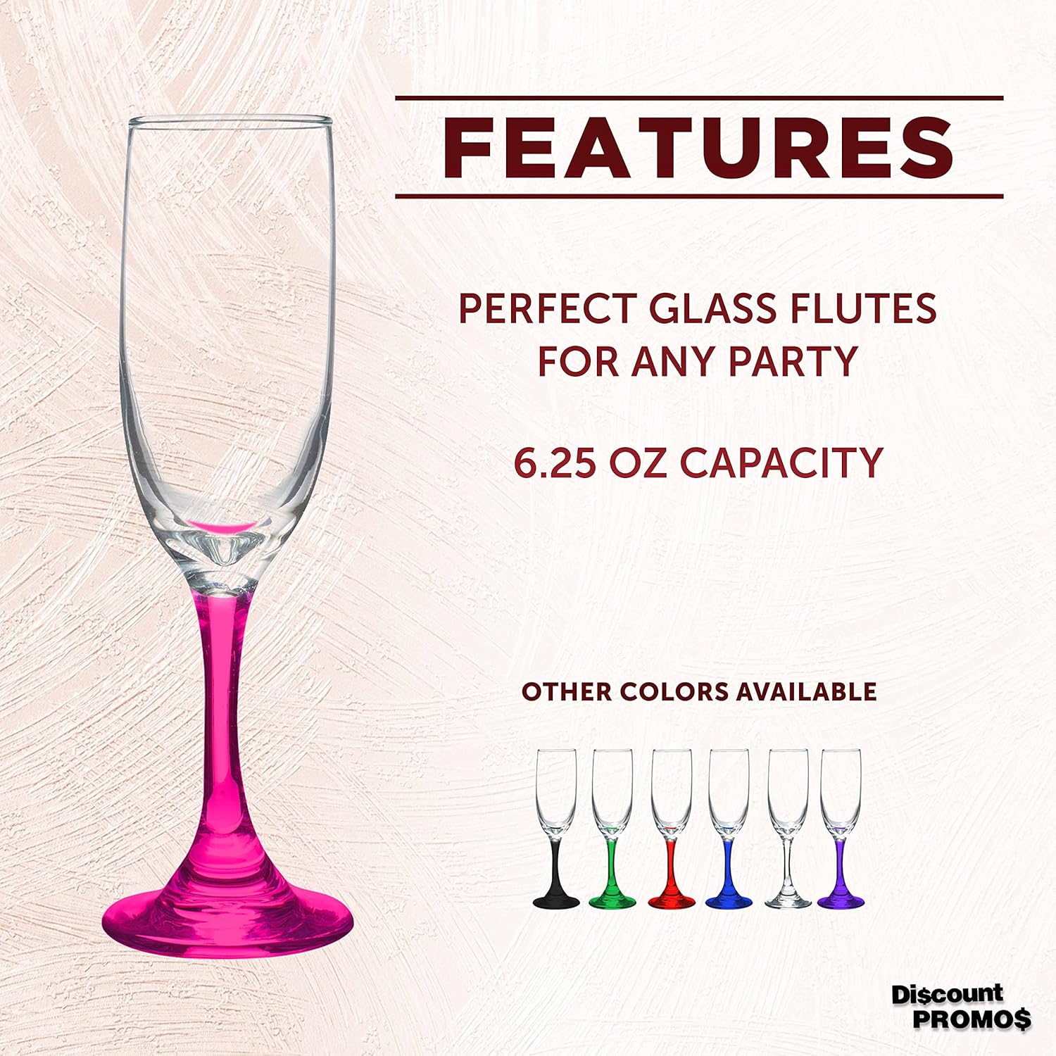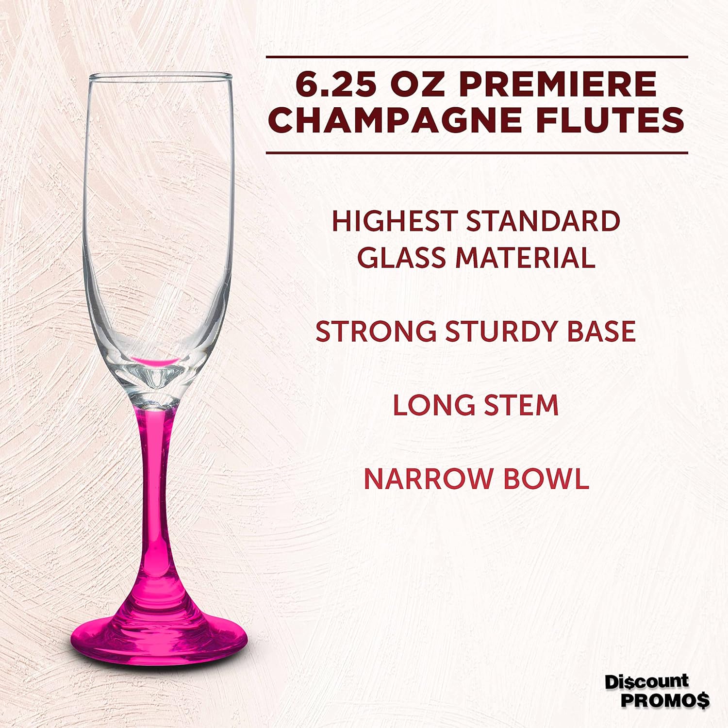 DISCOUNT PROMOS Premiere Champagne Flutes 6.25 oz. Set of 10, Bulk Pack - Elegant Drinkware for Weddings, Events, & Promotional Gifts - Pink