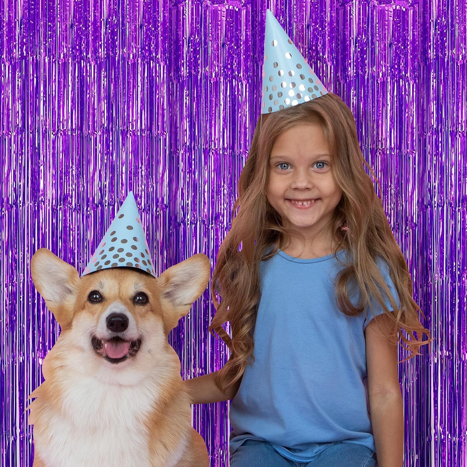 5 Pack Purple Fringe Backdrop 3.2ft x 8.2ft Foil Curtain Tinsel Foil Fringe Curtains Backdrop Tinsel Backdrop Streamers for Birthday Curtain Party Decoration Wedding Christmas Decoration (Purple)