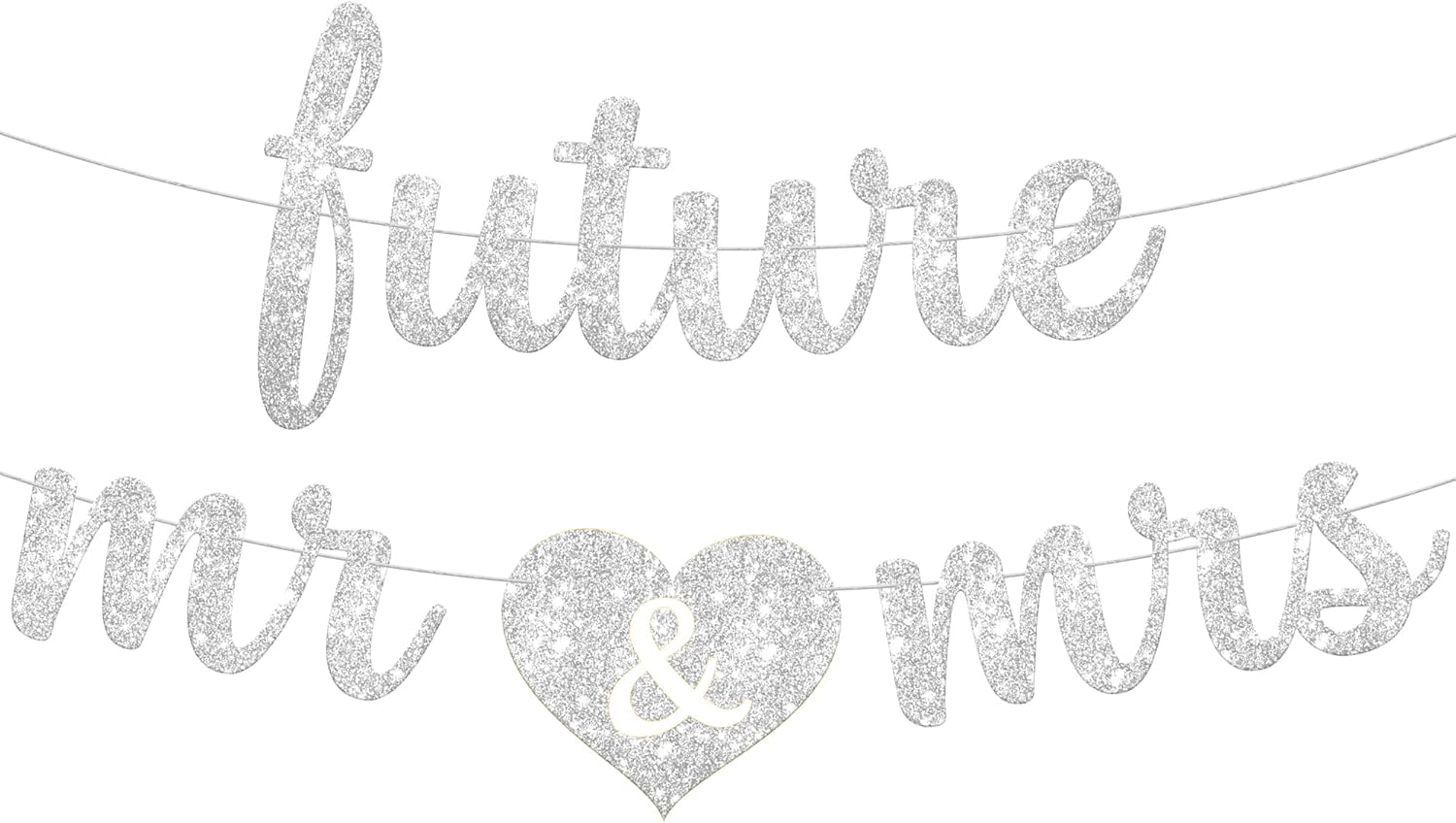 - LARGE SIZE, 10 FEET | REAL SILVER GLITTER FUTURE MR & MRS BANNER: Planning a fabulous and elegant bridal shower before you tie the knots? Decorate your event with these authentic glitter Future mr and mrs banner silver. Wengagement banner silver wedding shower decorations these vibrant 10 feet real glitter silver couple bachelorette party decorations are perfect for a fun sweet bride to be party decorations before the most awaited day of wedding. ideal Engagement party decorations silver for your party