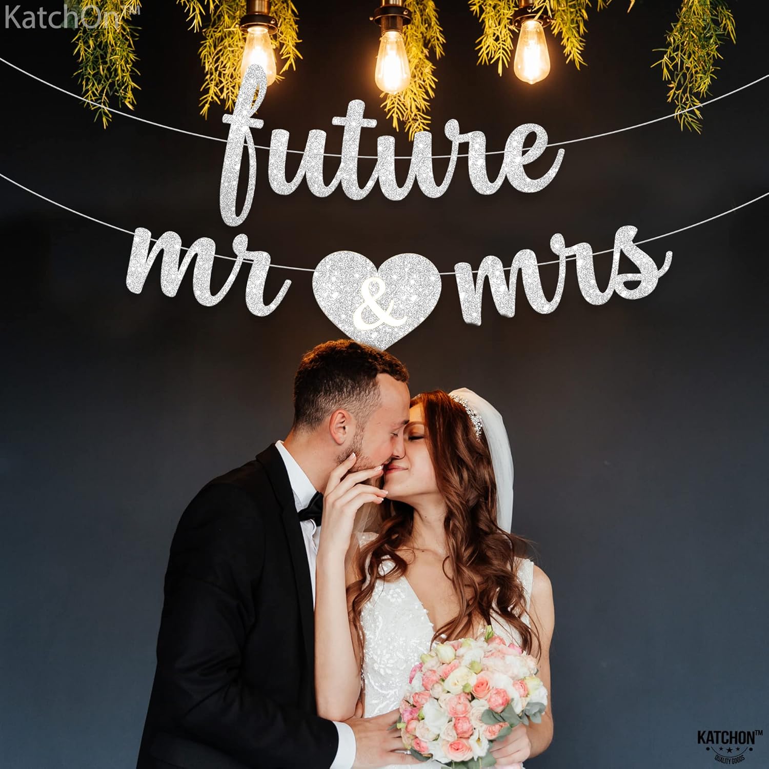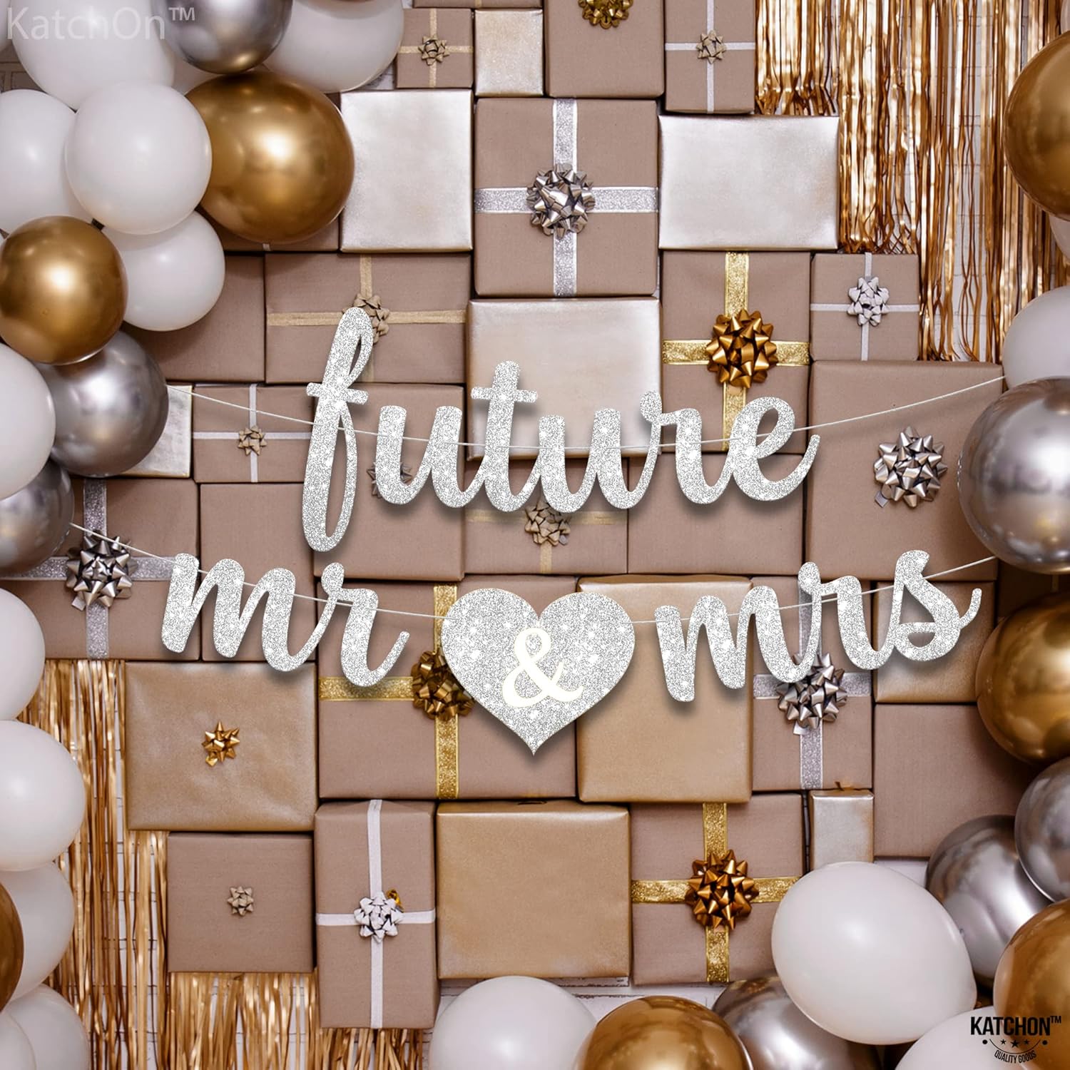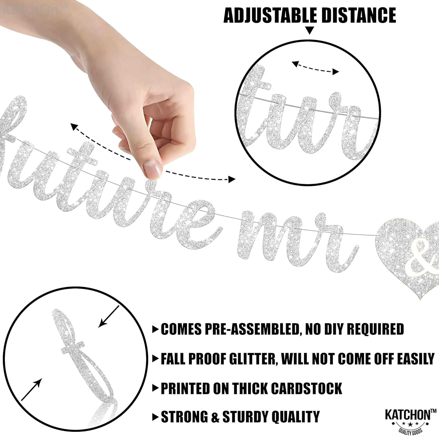 KatchOn, Silver Glitter Future Mr & Mrs Banner - 10 Feet, Pre-Strung, No DIY | Future Mr and Mrs Banner | Engagement Party Decorations | Bachelorette Party Decorations, Bridal Shower Decorations