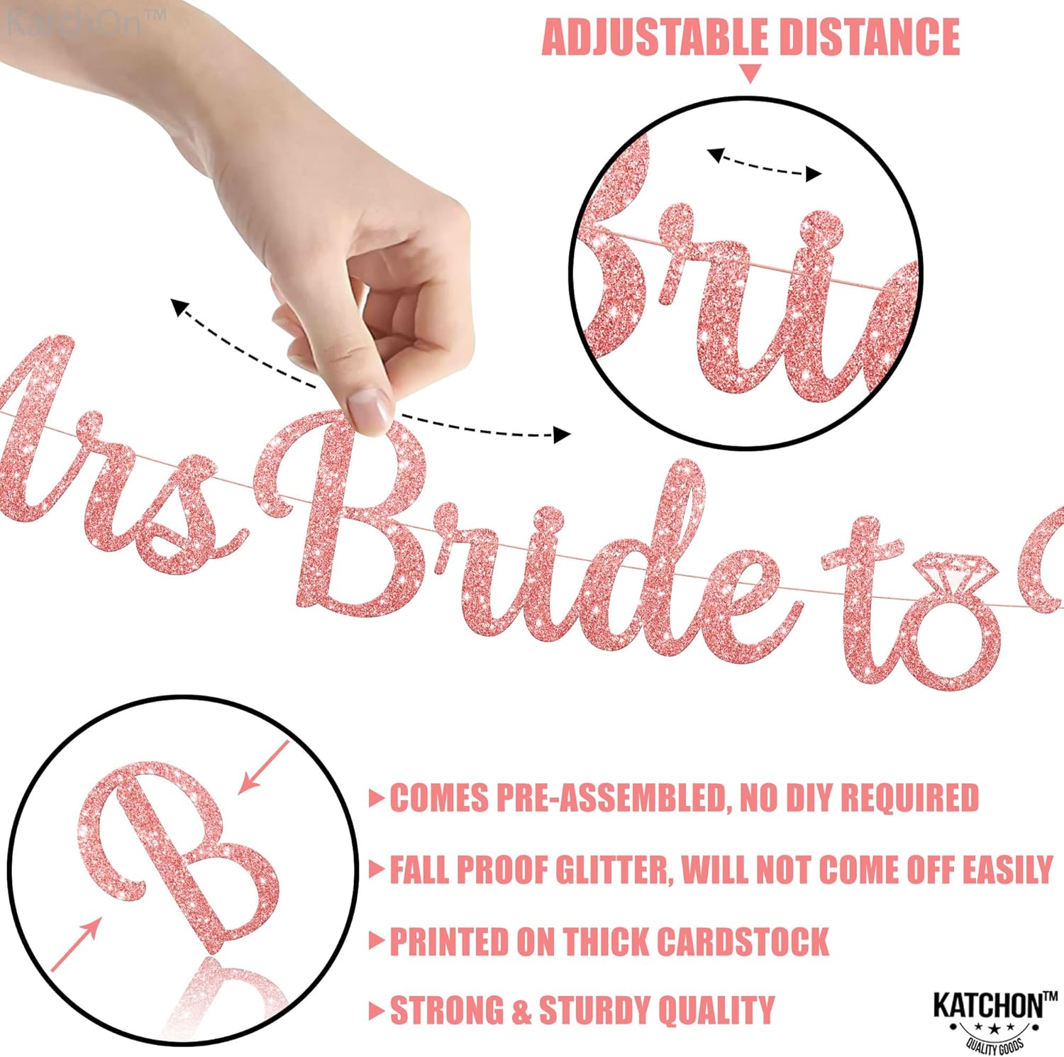 - GIFT MEMORIES WITH OUR PICTURE-PERFECT BANNER: Spice up your bachelorette party supplies with this classy bride to be banner rose gold. A bridal shower outside banner with soon to be mrs banner and future mr and mrs banner that would surely amaze everyone with a fabulous event. These bridal shower banners and signs can be used for bachelorette decorations, hen party Decorations, tea party bridal shower Decorations, Wedding Shower Decorations, engagement party Decorations and many more.