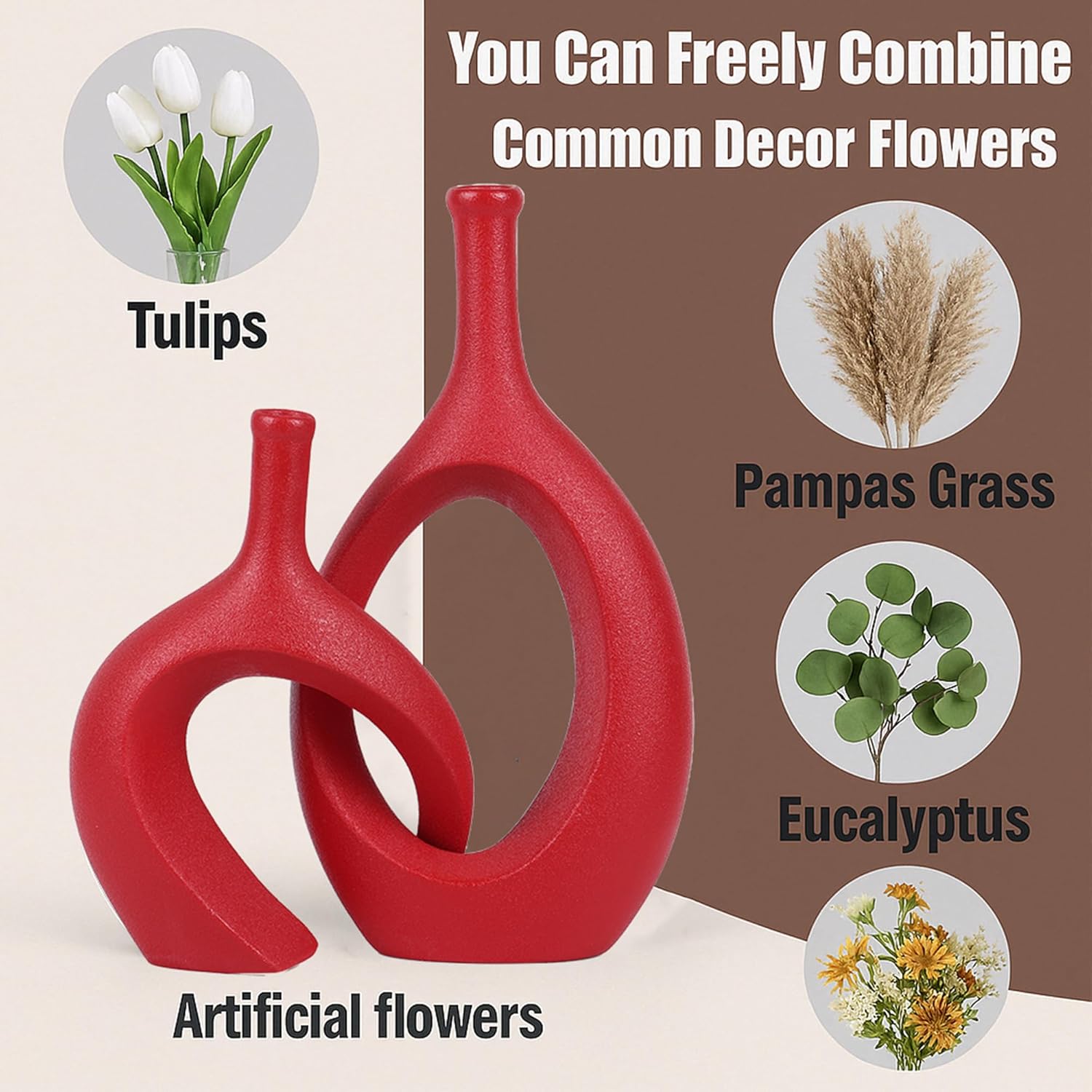 WUBIANJIE Red Ceramic Vase Set - Modern Boho Decor, Snuggle Design, Vases for Living Room, Bedroom, Coffee Table, Fireplace
