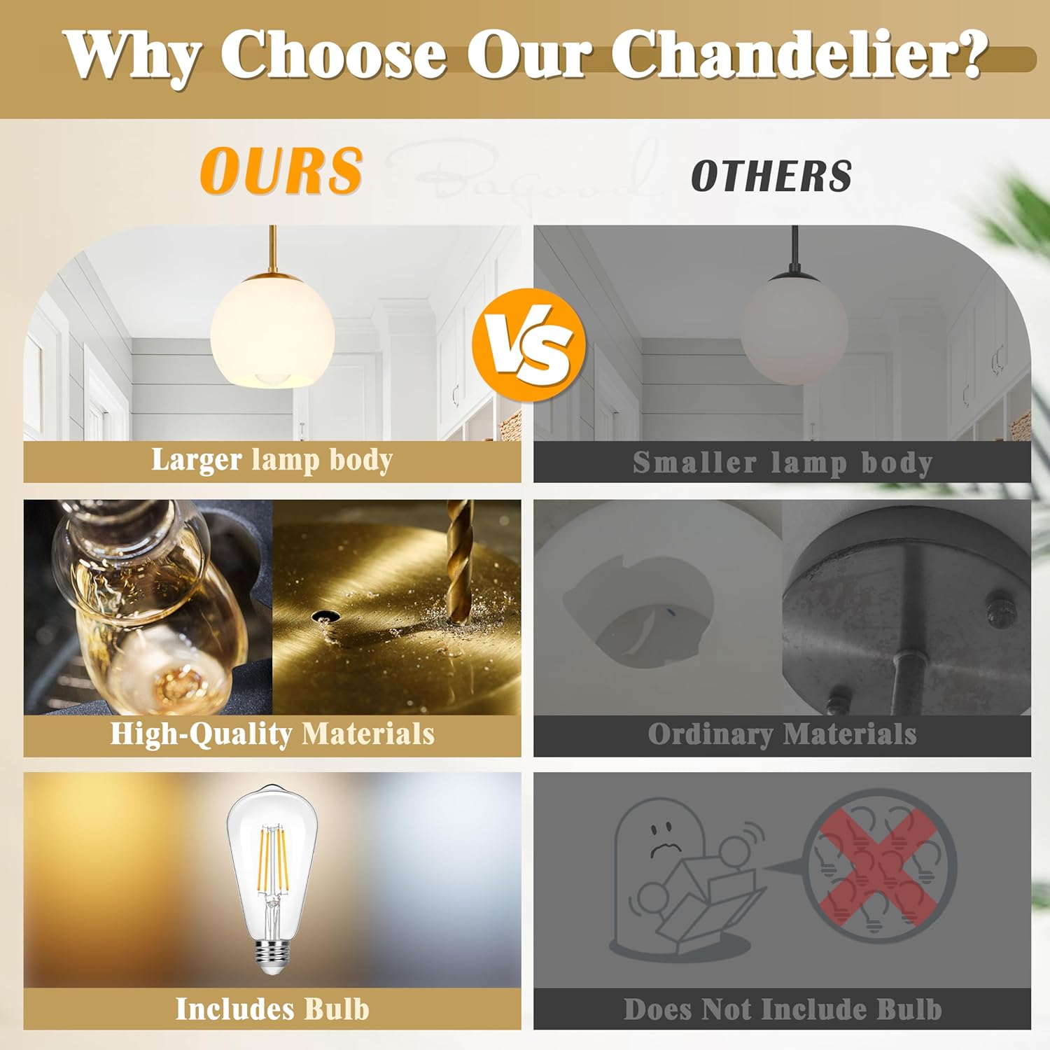 - [Bulbs Included & Dimmable]:The milk glass globe light fixture designed with 1 x E26 socket with a max power of 60W. When you buy other dimmable bulbs and combine it with a wall dimmer(not included) it can be fully dimmable. so you can use this fixture with confidence