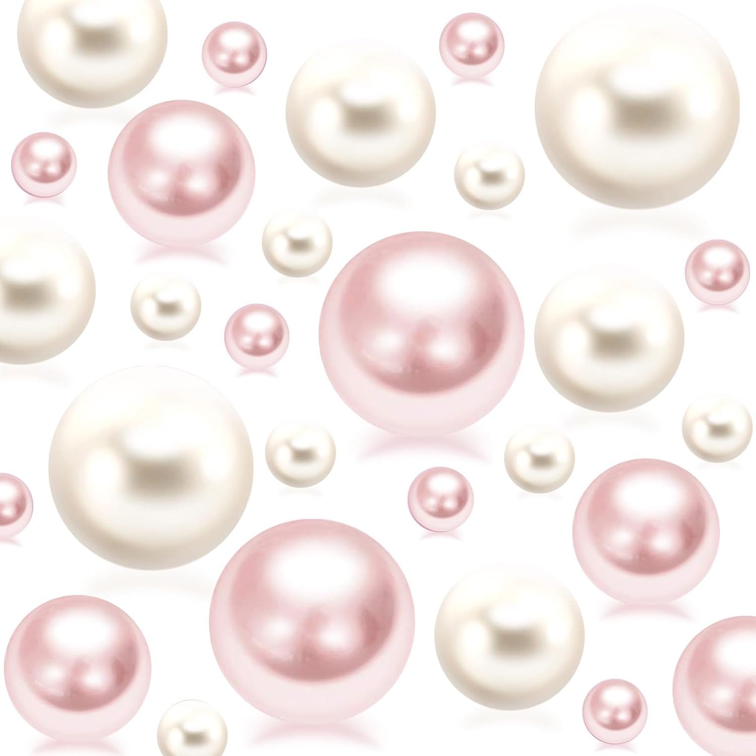 150Pcs Cream&Pink Polished No Hole Faux Pearl Beads for Vase Filling Decorations, Plastic Pearls Vase Fillers, Table Scatters, Wedding Centerpiece, Home Decor, 8/14/20 mm