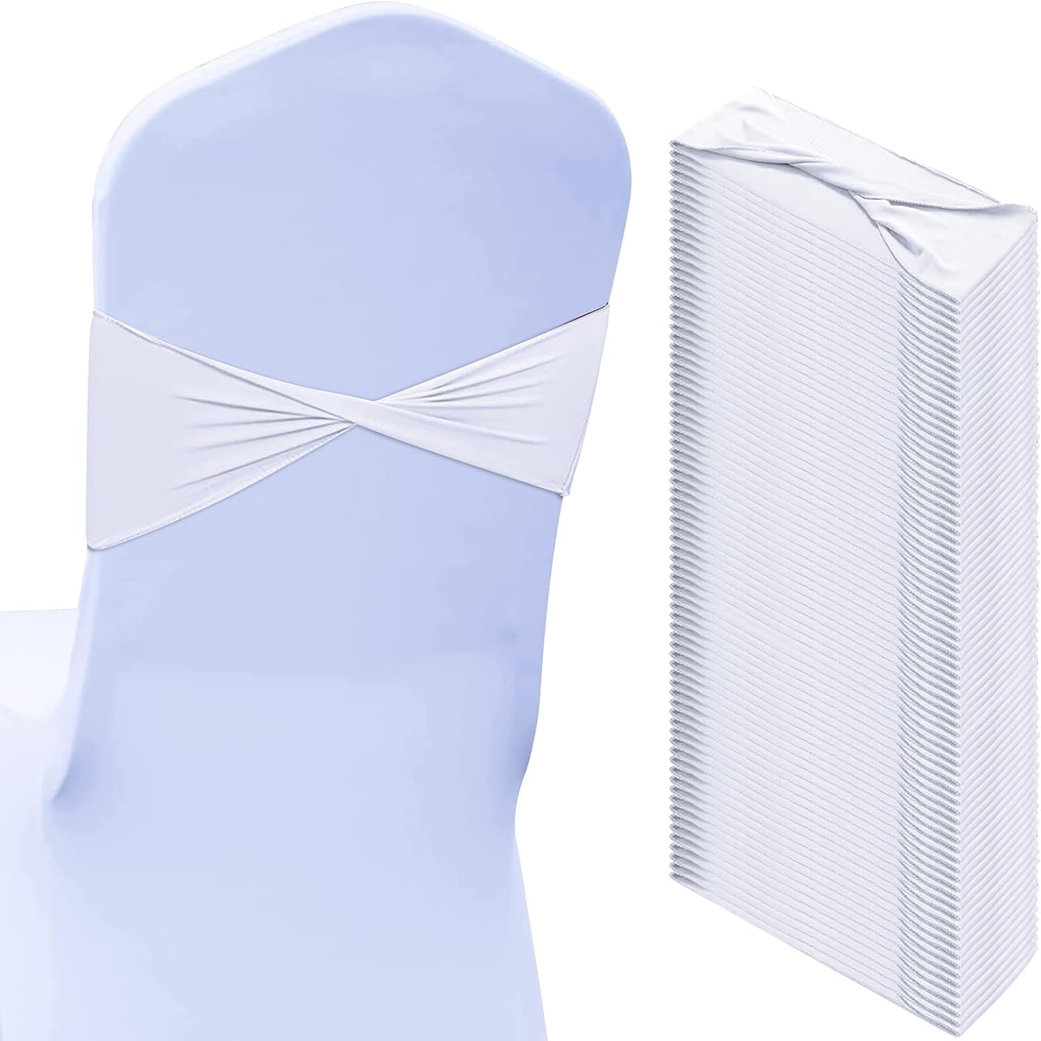 Kinlop 50 Pcs Spandex Chair Sashes Bows Chair Bands Slider Sashes for Covers Elastic Bands Ties Without Buckle Decorations for Wedding Party Events Ceremony Birthday(White)