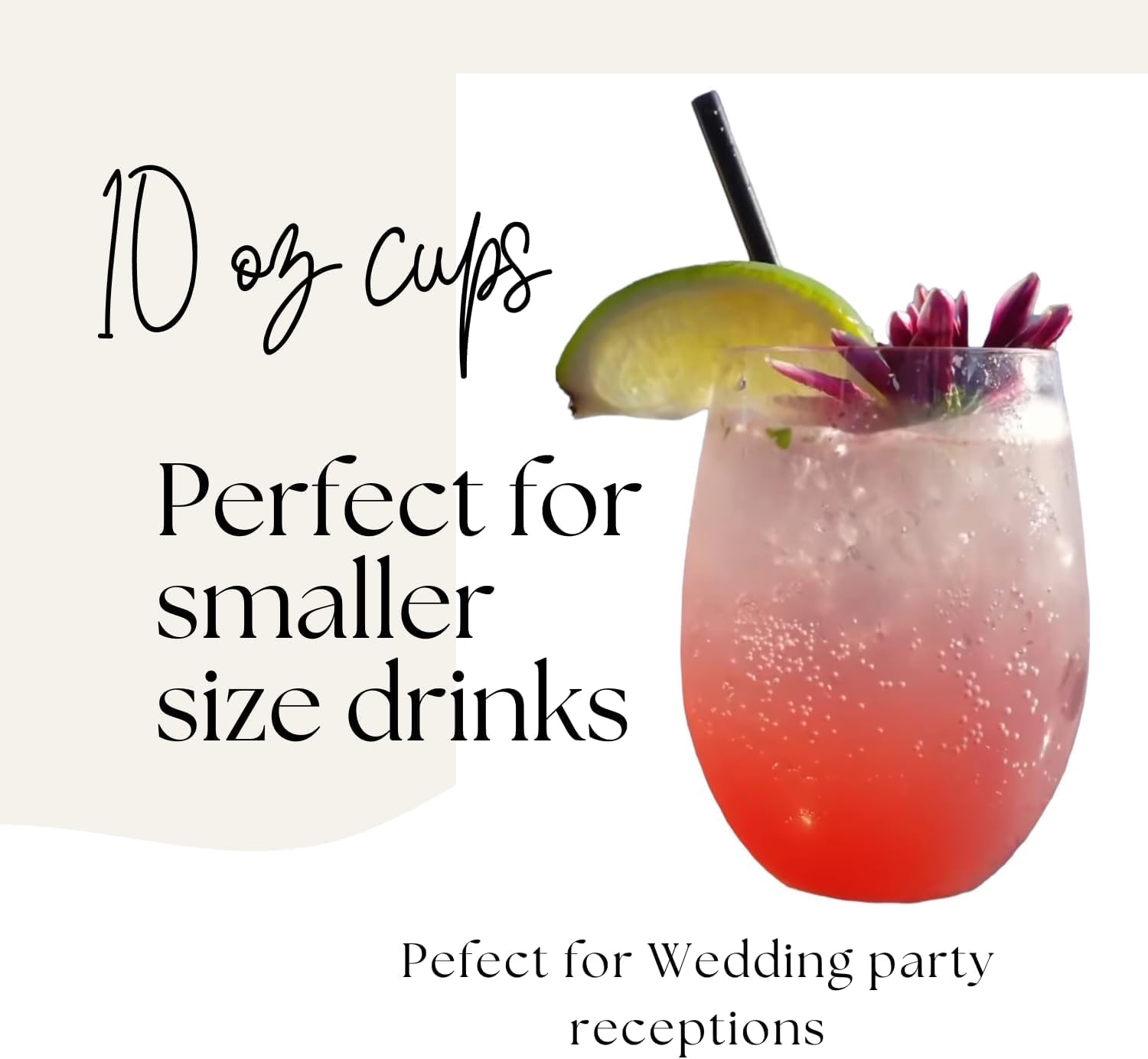 - Small cups size 10 oz Elegant Gold Rim Design Add a sophisticated touch with the classy gold rim—perfect for weddings, showers, holidays, or elegant dinner parties. The clear plastic design mimics real glass for upscale presentation. Durable & Shatterproof – Made from high-quality, unbreakable plastic, these plastic stemless wine glasses disposable provide a safe and sturdy alternative to traditional glassware, ensuring a worry-free celebration.