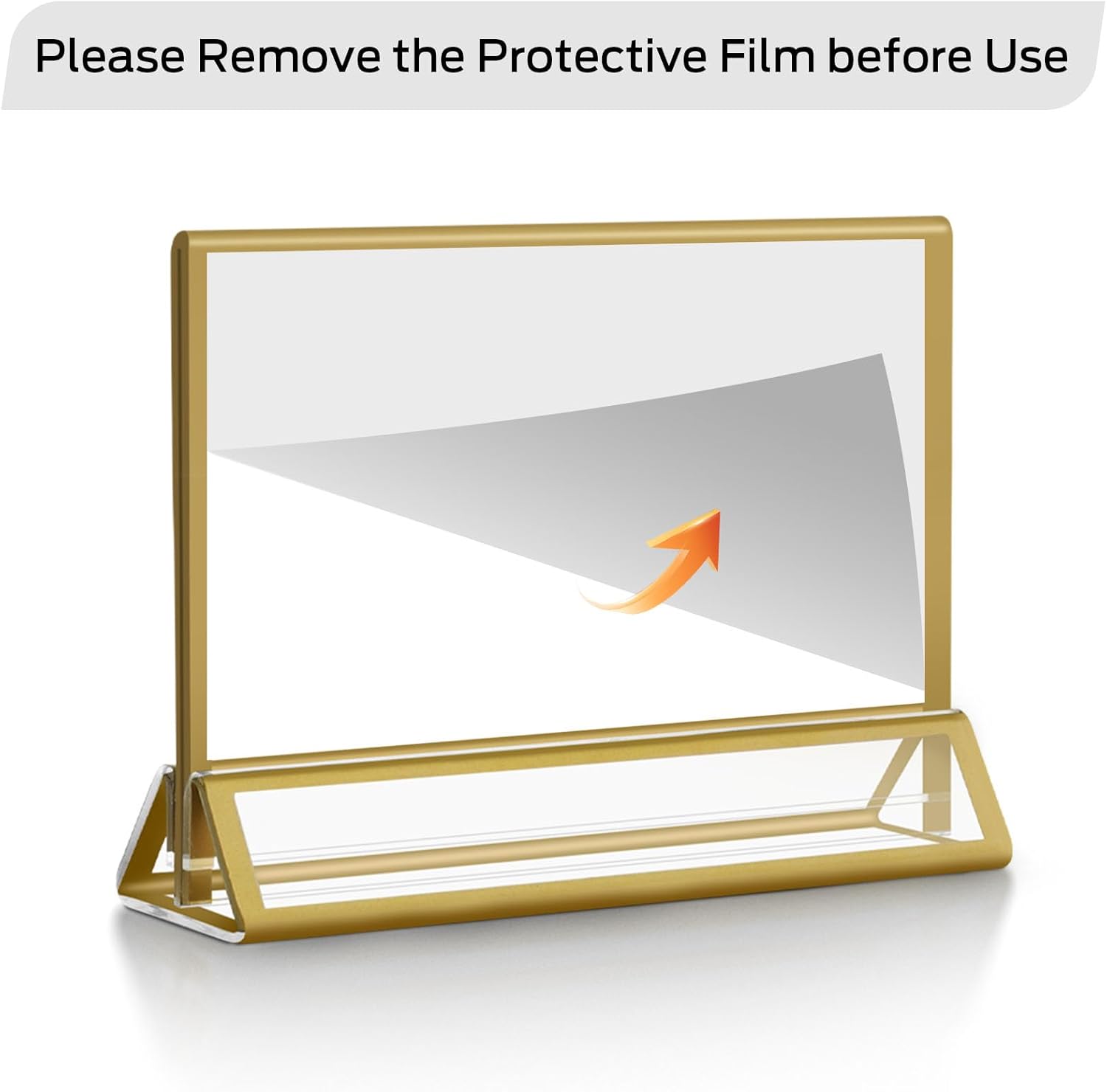 - 【What You Get】Pack of 16 gold acrylic sign holder with 16 horizonal stand, sufficient quantity can fully display any items you want to display. The clear acrylic sign holder with gold border measures 7x5 inch which can display pictures or documents.