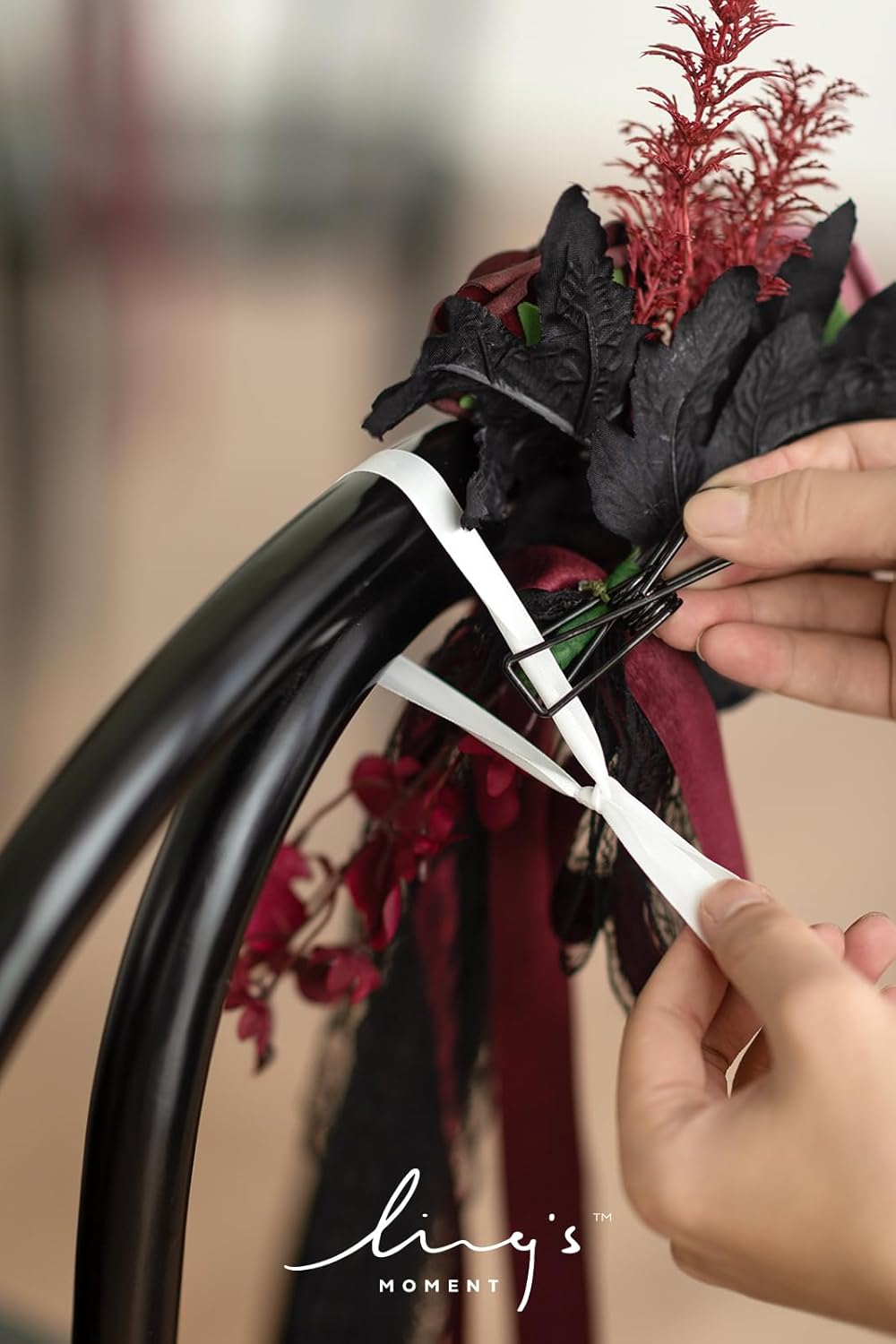 - WEDDING AISLE DECOR DETAILS: 8 pcs pre-made fake aisle marker pew flowers and 8 double-color ribbon card sets, which helps to create your romantic autumn, burgundy black or winter wedding. Aisle suitable for four rows of guest seating. If there are more queues, it is recommended to purchase multiple copies.