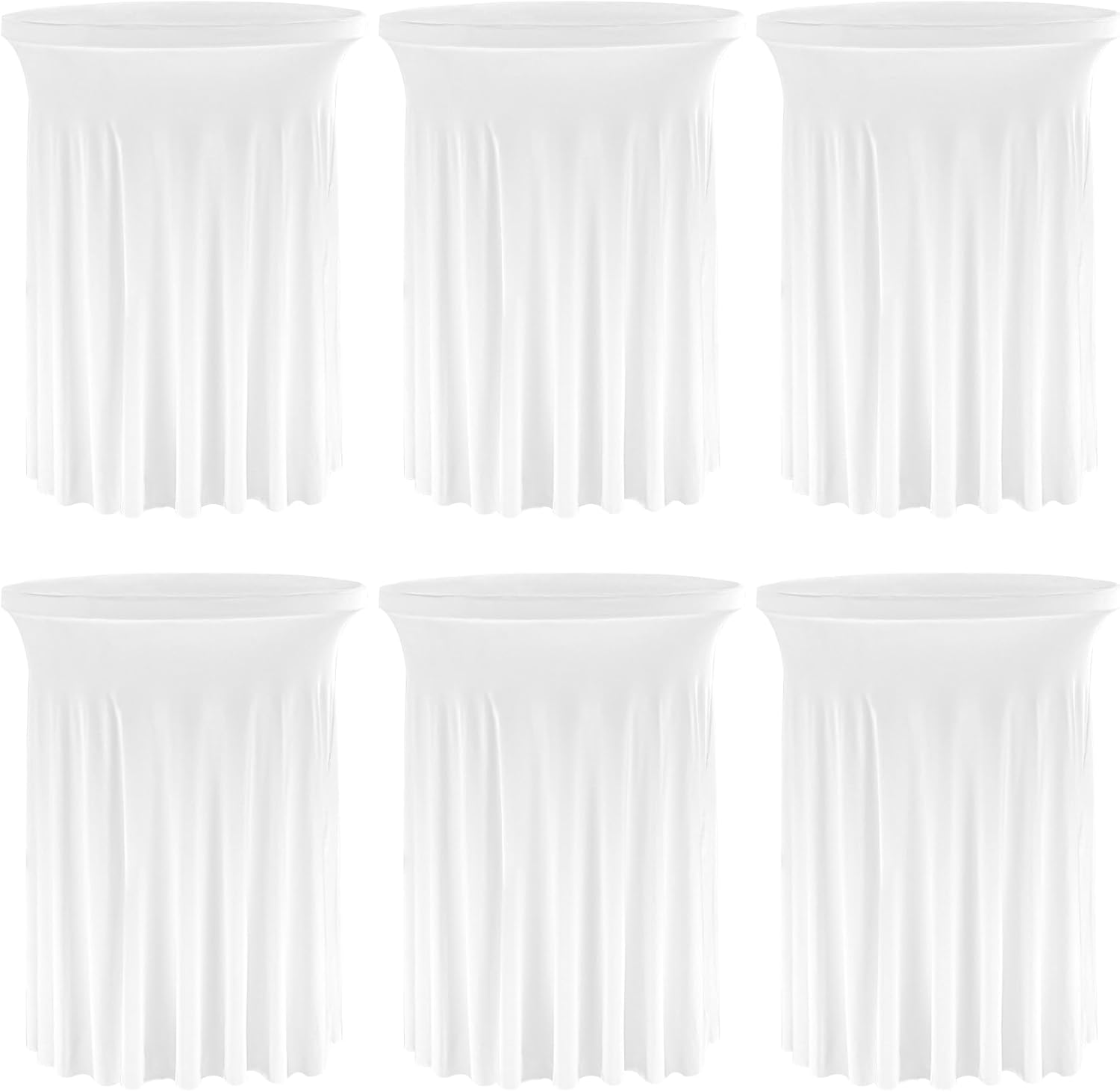 6 Pack Round Cocktail Tablecloth 32"x 43" Spandex Cocktail Table Skirt, Washable Stretch Fitted Table Covers for High Top Bar,Wedding,Party,Events (White)