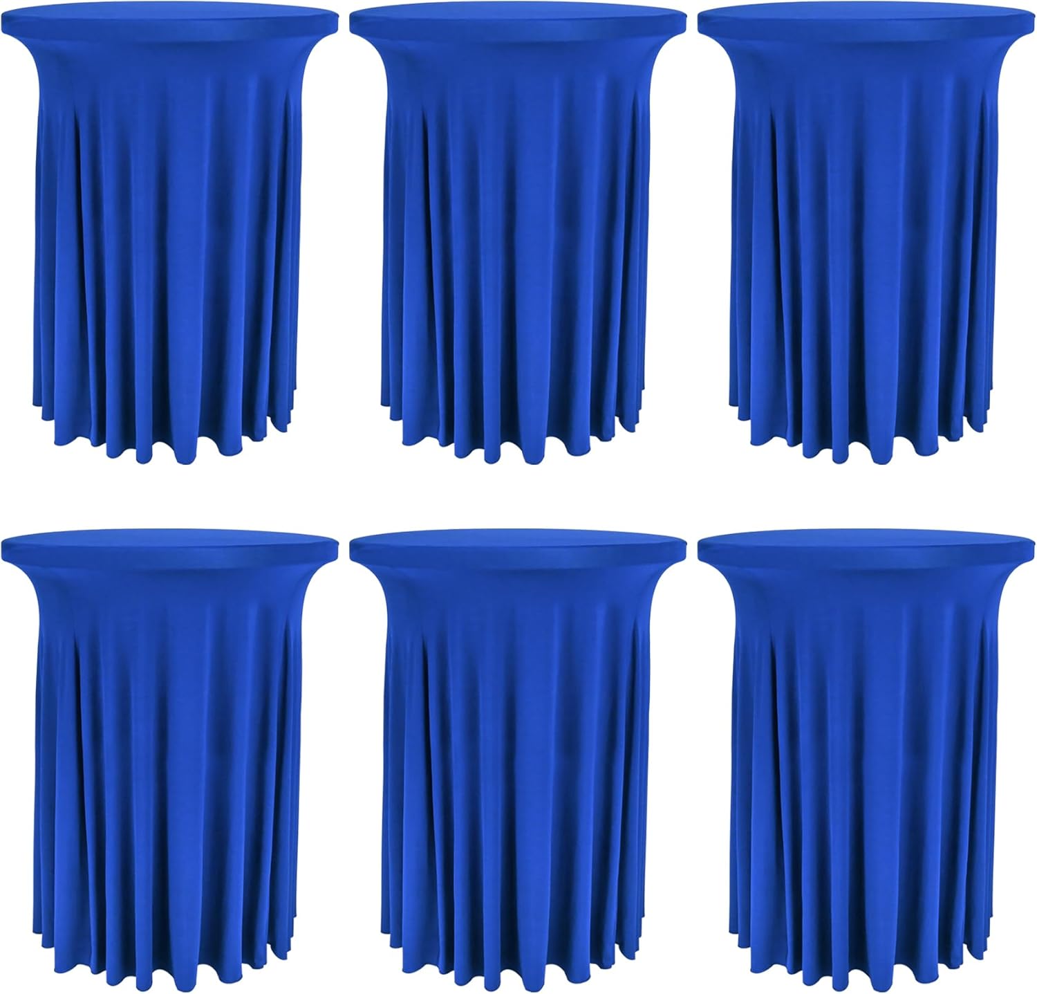 6 Pack Round Cocktail Tablecloth 32"x 43" Spandex Cocktail Table Skirt, Washable Stretch Fitted Table Covers for High Top Bar,Wedding,Party,Events (Royal Blue)