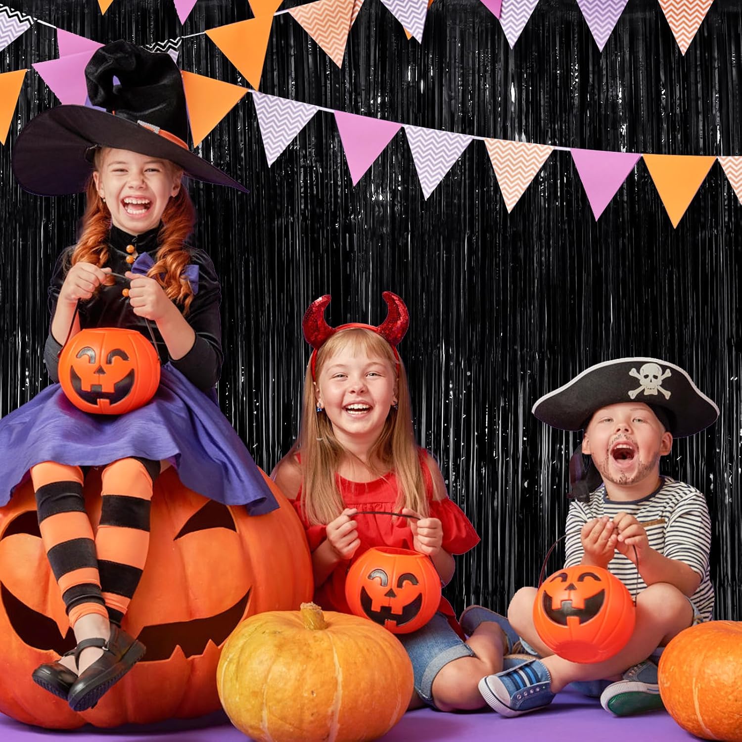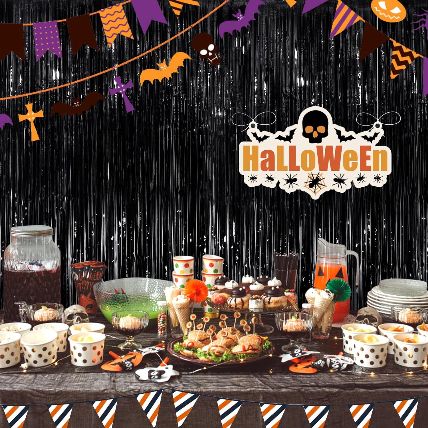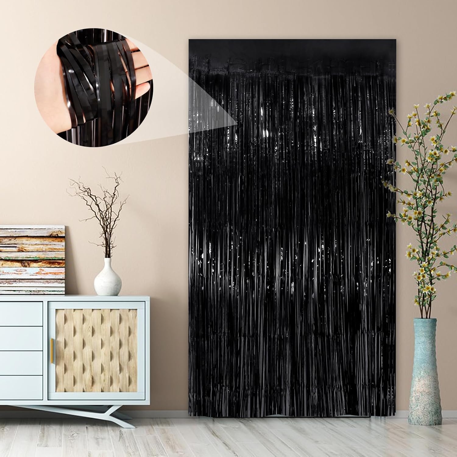 Black Fringe Curtain Party Streamers 4Pack 3.3 x 8.3 Ft Foil Fringe Backdrop Curtains for Birthday Wedding Bridal Baby Shower Holiday Tinsel Streamers Black Party Decorations Door Streamer
