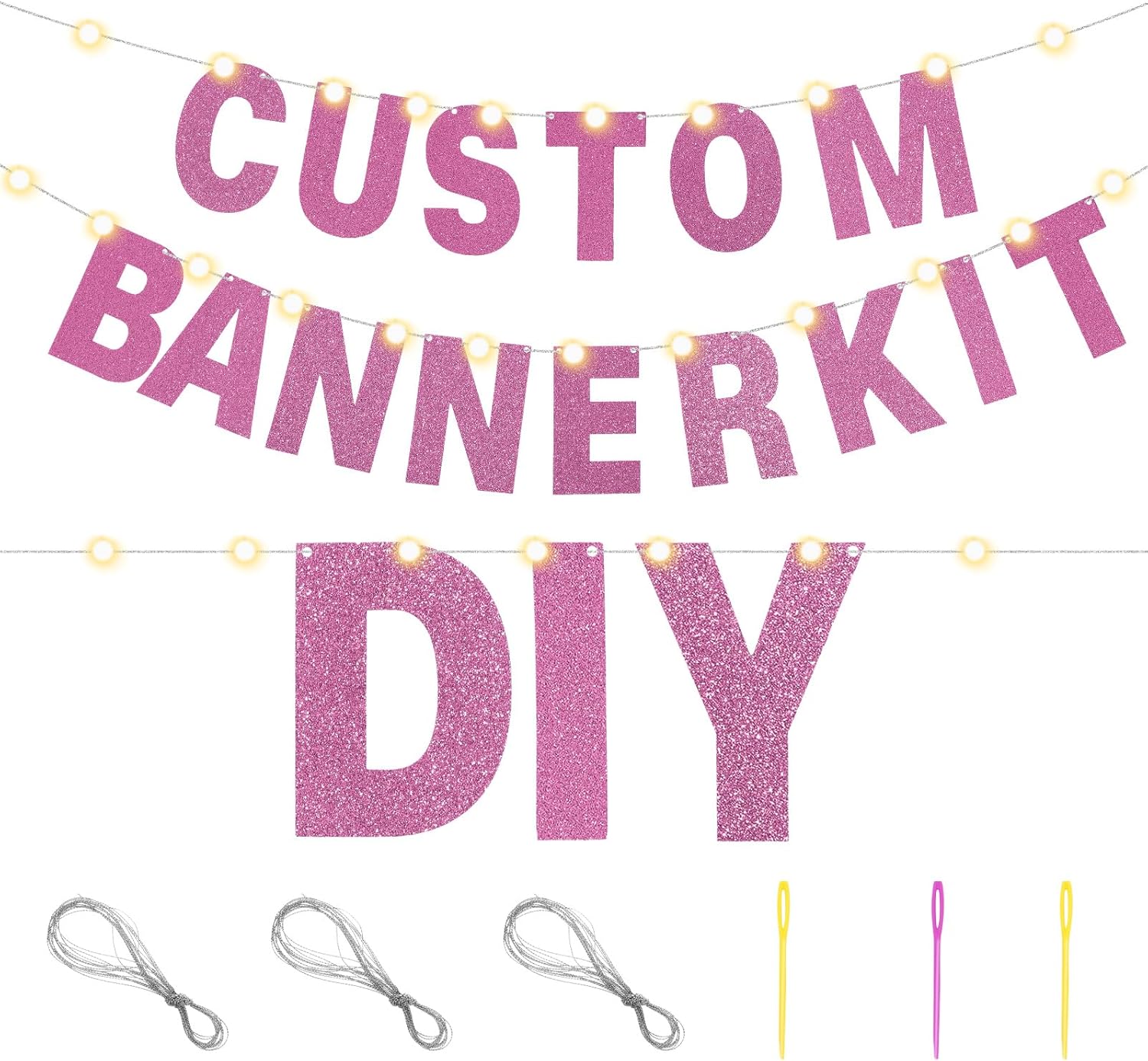 TaoBary 112 Pcs DIY Letter Custom Banner Glitter Customizable Banner Kit Including 107 Letters and Numbers 3 Rope for Valentine Birthday Party(Pink)