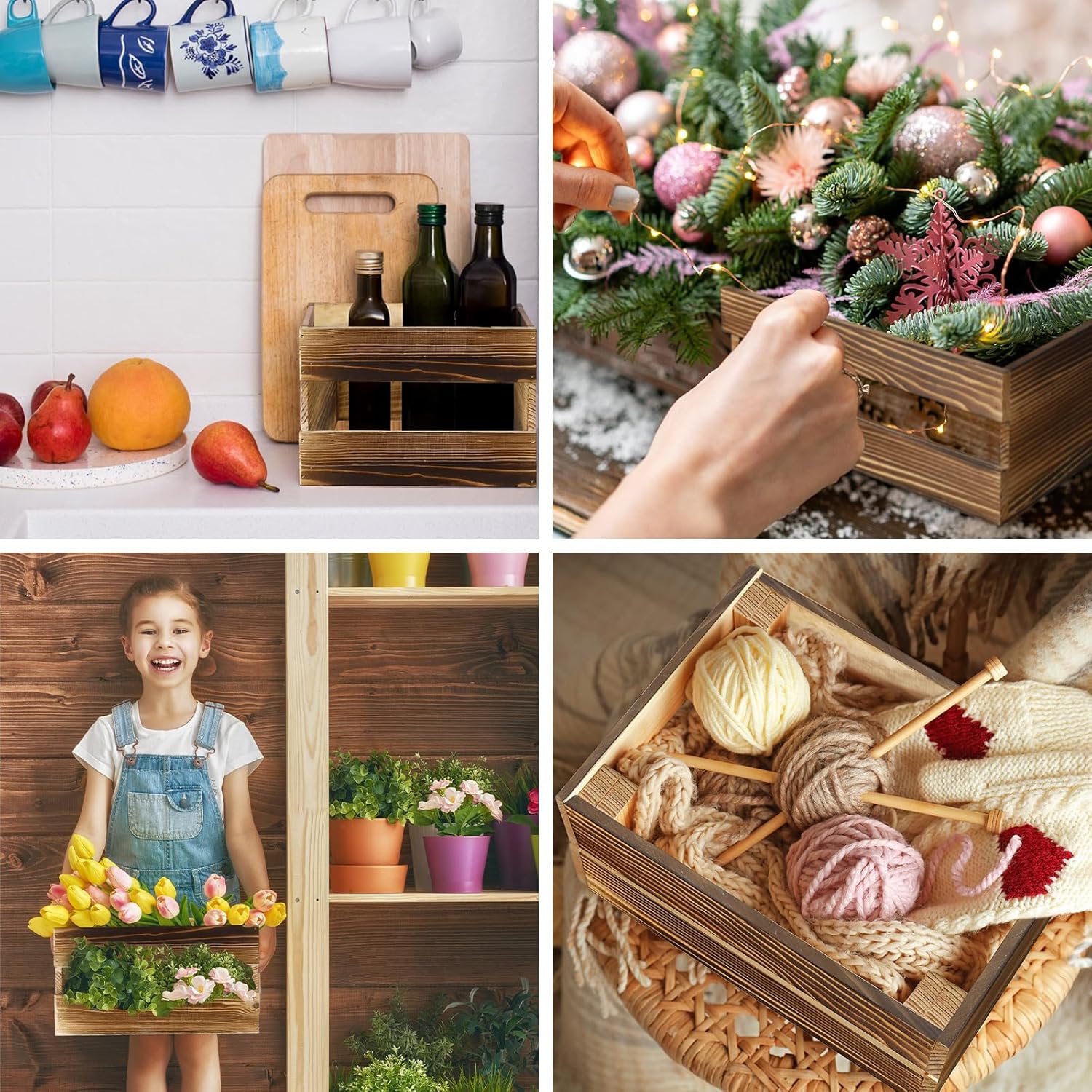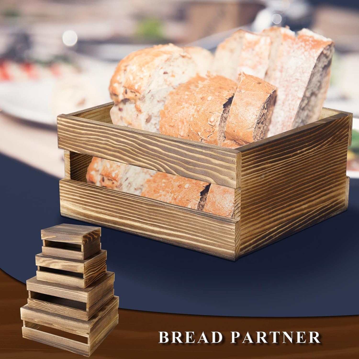 Sieral 4 Pieces Wood Cupcake Display Stand Decorative Dessert Appetizer Cake Stand Risers Wooden Crate Rustic Cake Risers for Storage for Party Christmas Halloween Wedding Decor(Rustic Dark Brown)