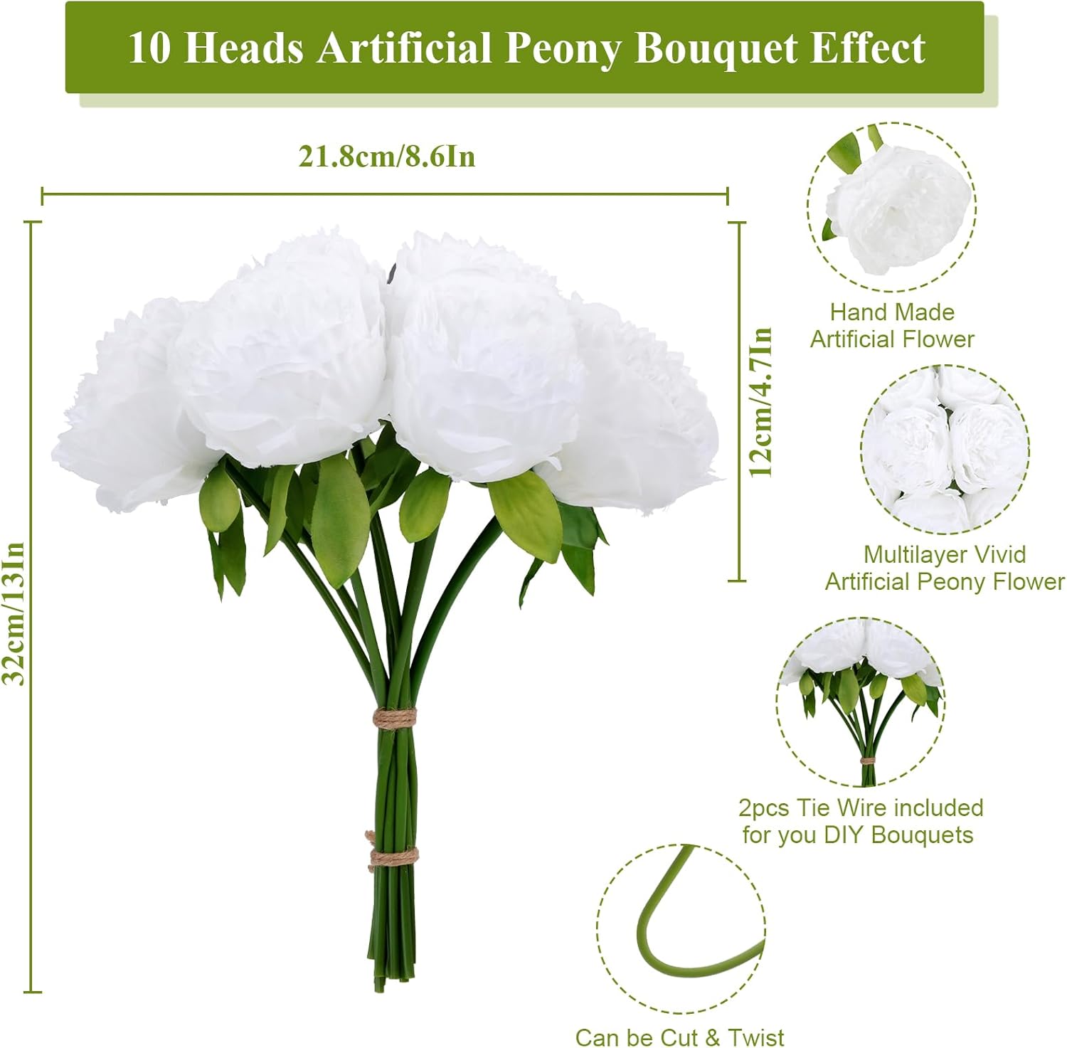 U'Artlines Artificial Peony Silk Flower with Stems 10pcs Real Look Vintage Peonies for Home Wedding Decoration(Pure White)