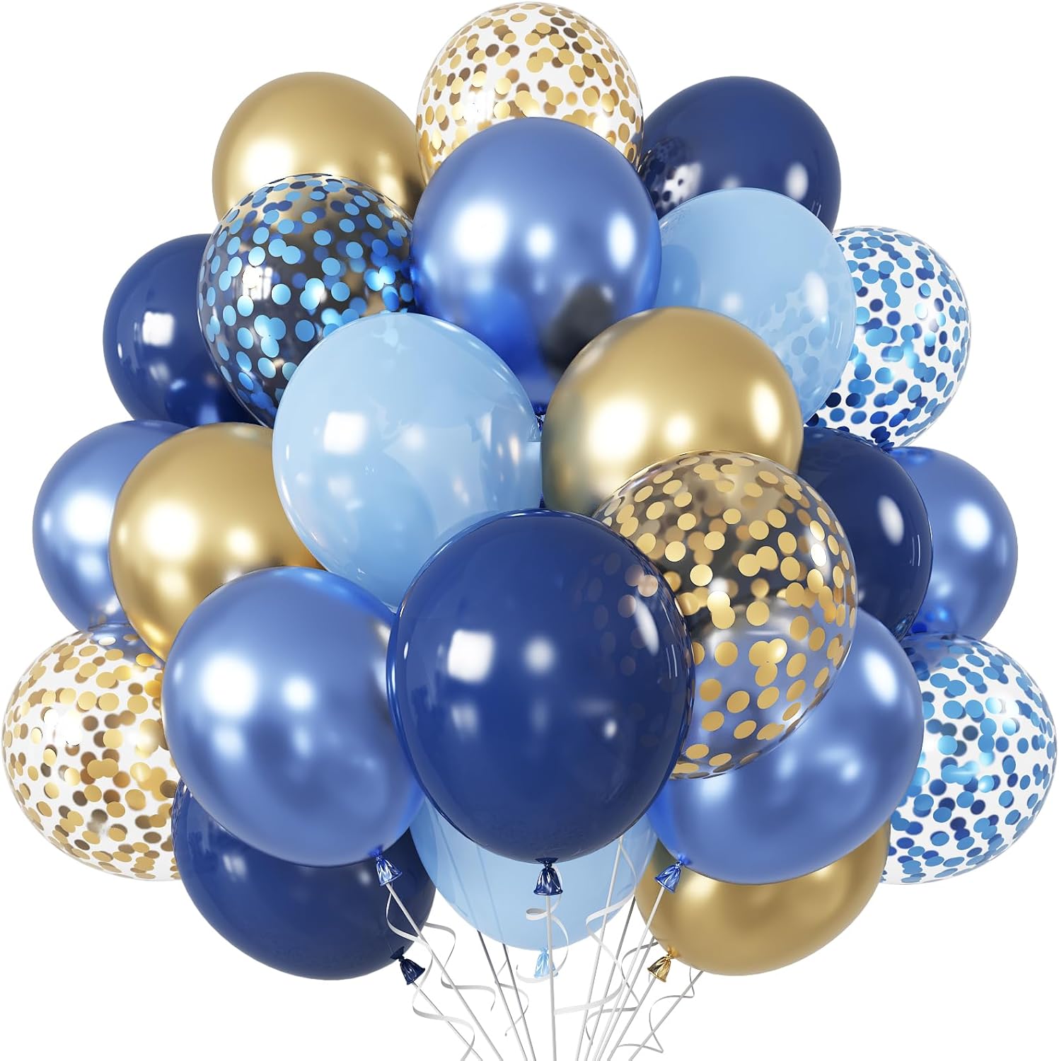 - ✨ Blue Gold Balloons: Our package includes 60pcs 12inch latex balloons (15pcs pearl blue balloons, 20pcs navy blue balloons, 10pcs metallic gold balloons, 5pcs metallic blue balloons, 5pcs blue confetti balloons, 5pcs gold confetti balloons) and 1pc balloon ribbon. Perfect for upscale events, birthday, or any occasion where elegance is key. Elevate your decor with these sleek and polished blue gold balloon that will leave a lasting impression on your guests.