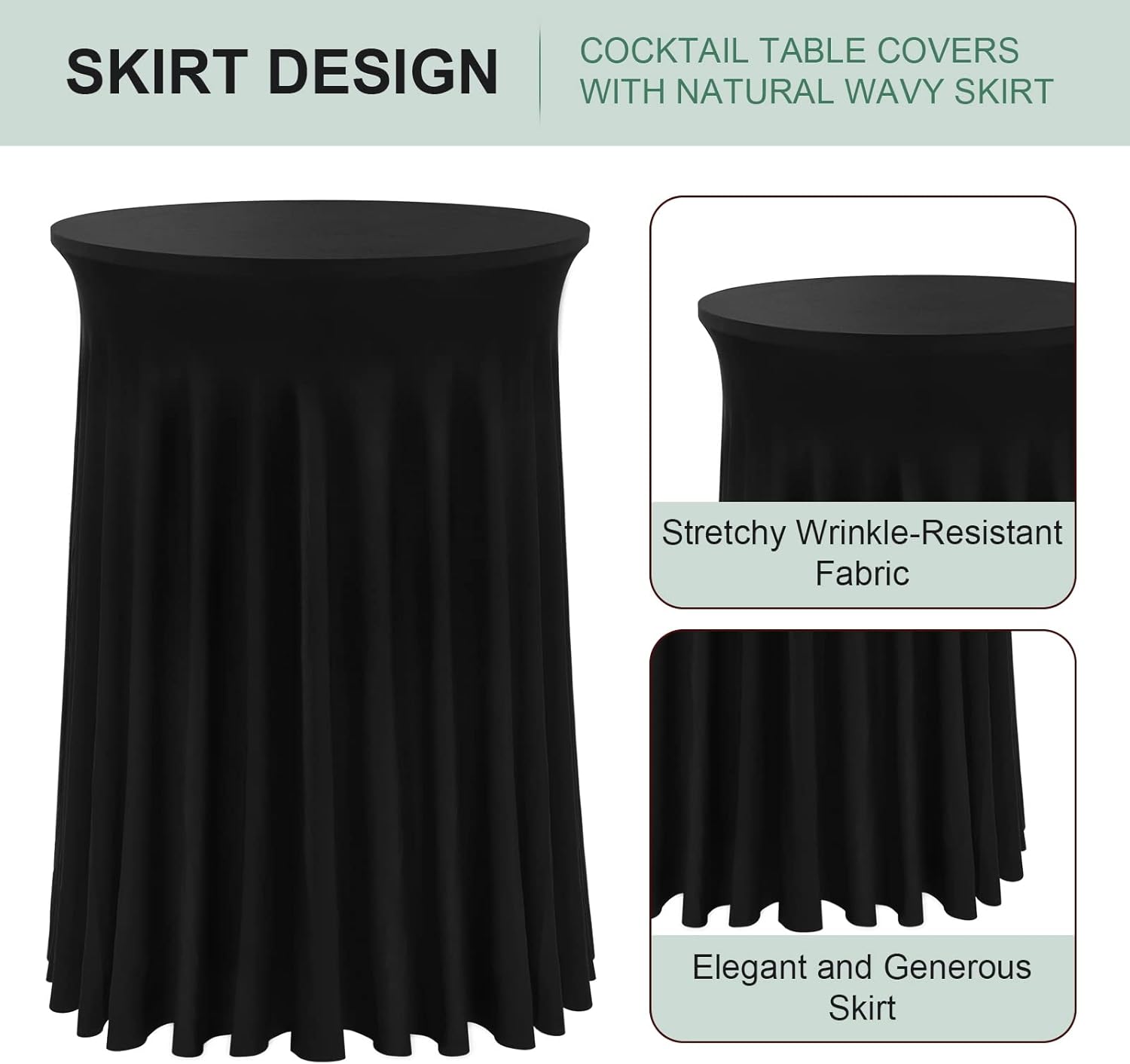 Cocktail Table Covers - 3 Pack 32"x 43" Black Cocktail Table Tablecloth with Natural Wavy Round Skirt for Bar Wedding Party Banquet
