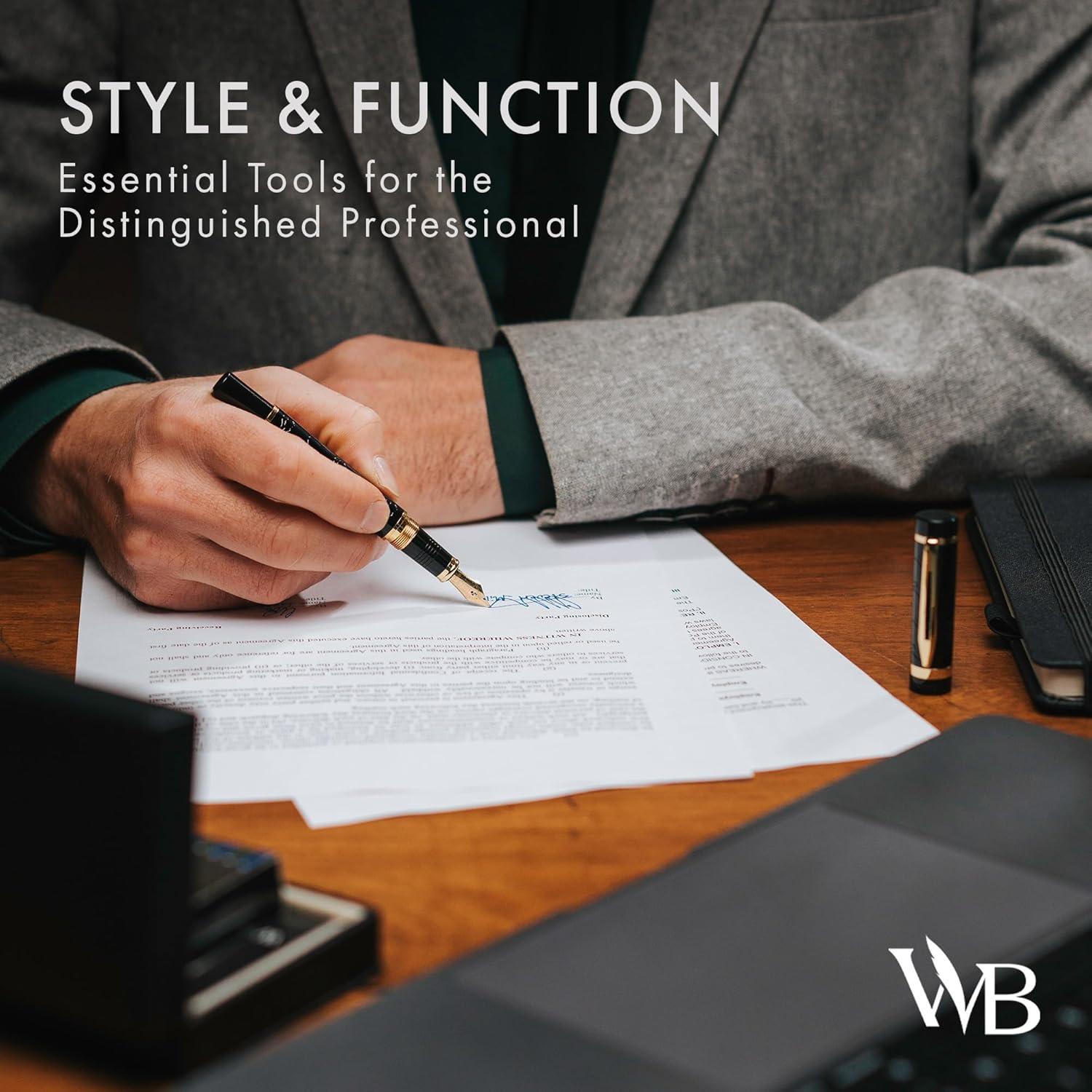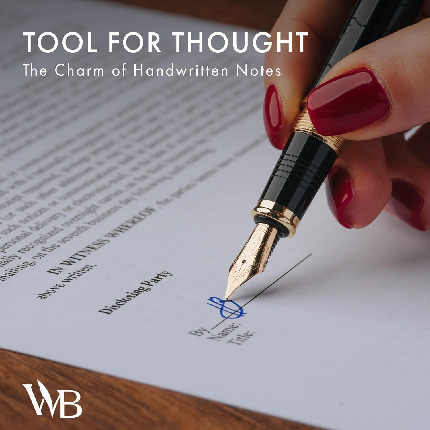 Wordsworth & Black Primori Fountain Pen Set [Black Gold]; Extra Fine Nib, Gift Case, 24 Ink Cartridges, Refill Converter, Manual; Journaling, Calligraphy, Smooth Writing Pens; Left and Right Handed