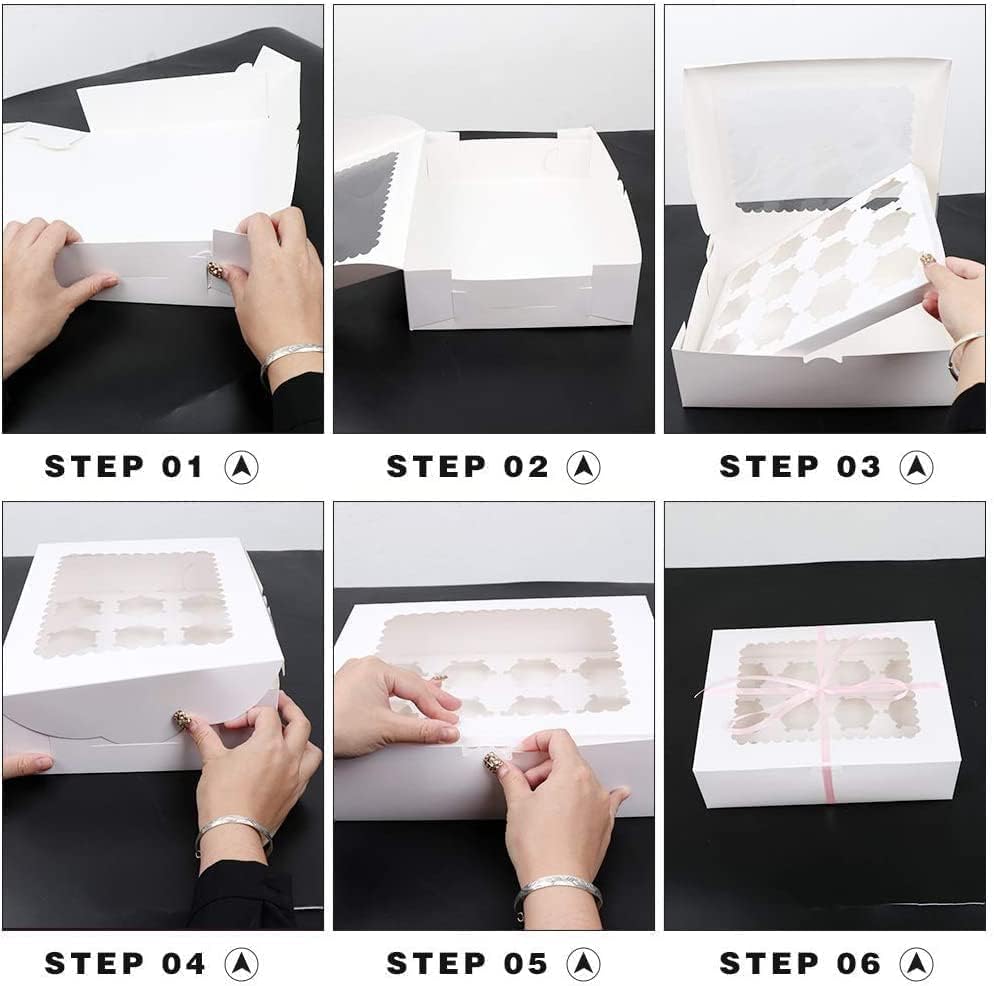 - Perfect Size: Our convenient boxes are generously sized that measures 12.8 x 10 x 3.5 inches, and insert measures 2.60" in diameter. Inserts are deep and wide enough to hold small or large cupcakes.