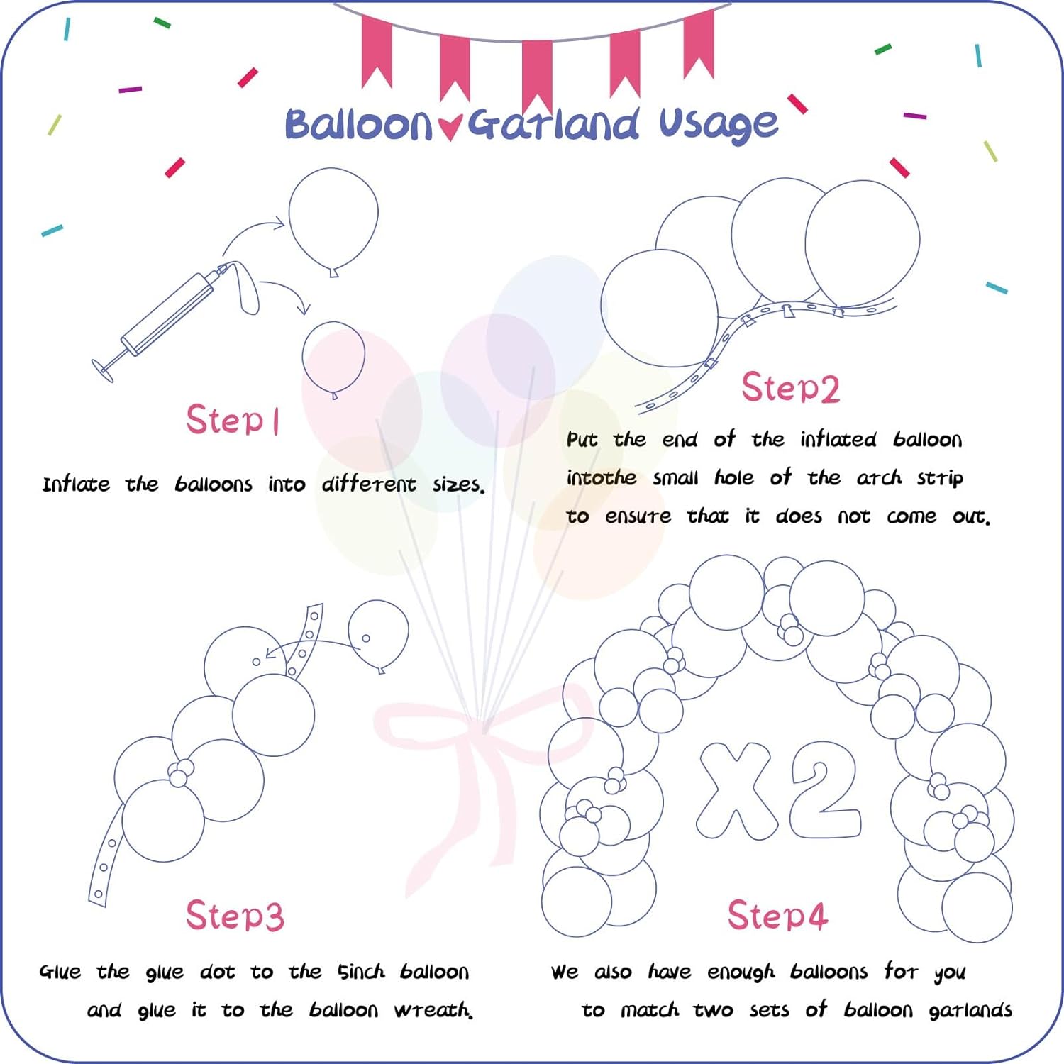 - METALLIC SILVER BALLOON ARCH GARLAND KIT: Includes 412 Metallic silver Balloons, 18inch 12pcs, 12inch 100pcs, 10inch 100pcs, 5inch 200pcs , 2 rolls of Balloon glue point(200pcs), 2 rolls of balloon decoration strip(32.8 feet / 5m*2 with 220 holes), 2 roll of ribbon. plenty in quantity, perfect for making indoor or outdoor them decoration.