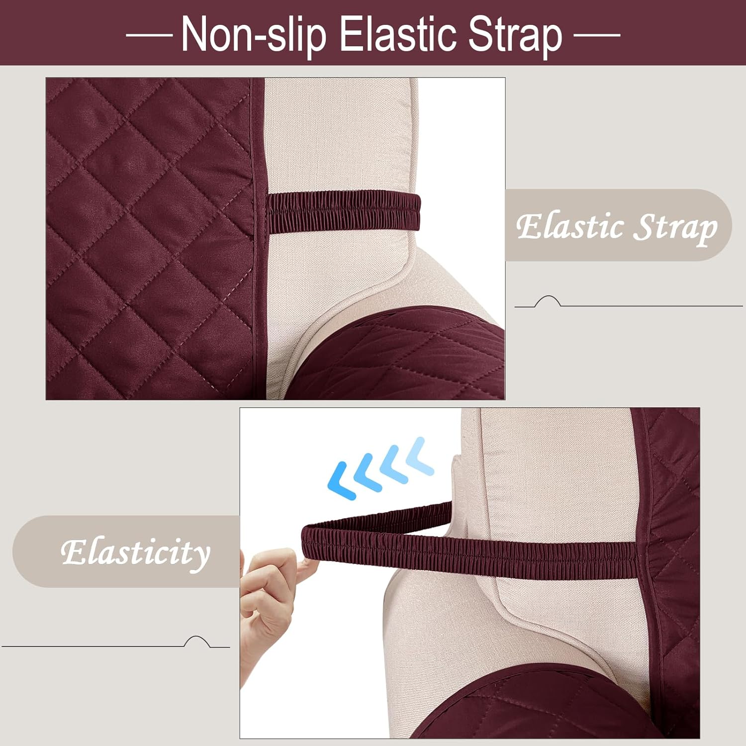 - PREVENT SLIDING: Couch cover feature elastic straps, extra long the arm flap to make the fabric more tight. Two non slip foam anchors guarantee the cover stay in place better.