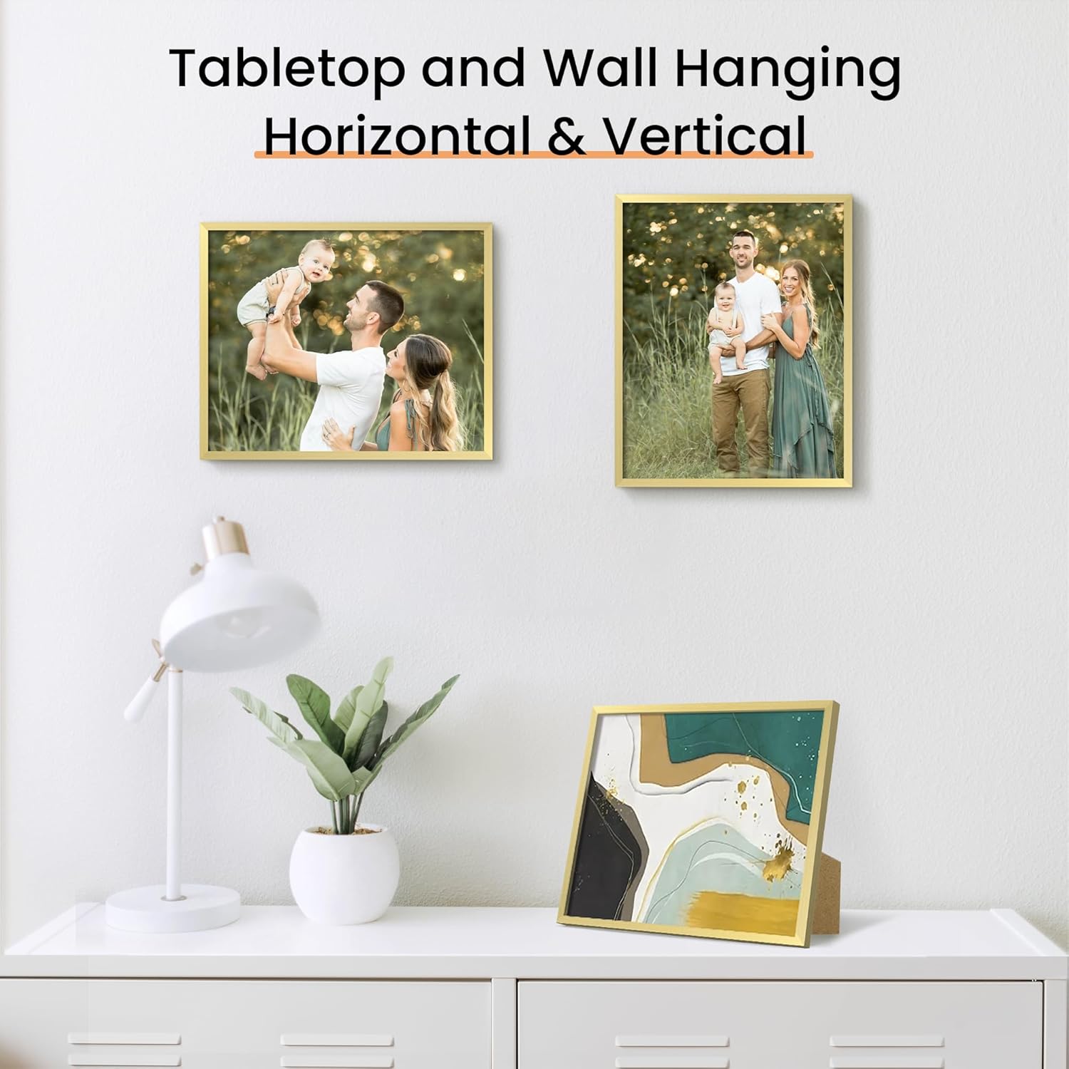 - Size: One wall gold photo frame fits 8x10 photo without mat, can be hung horizontally or vertically.