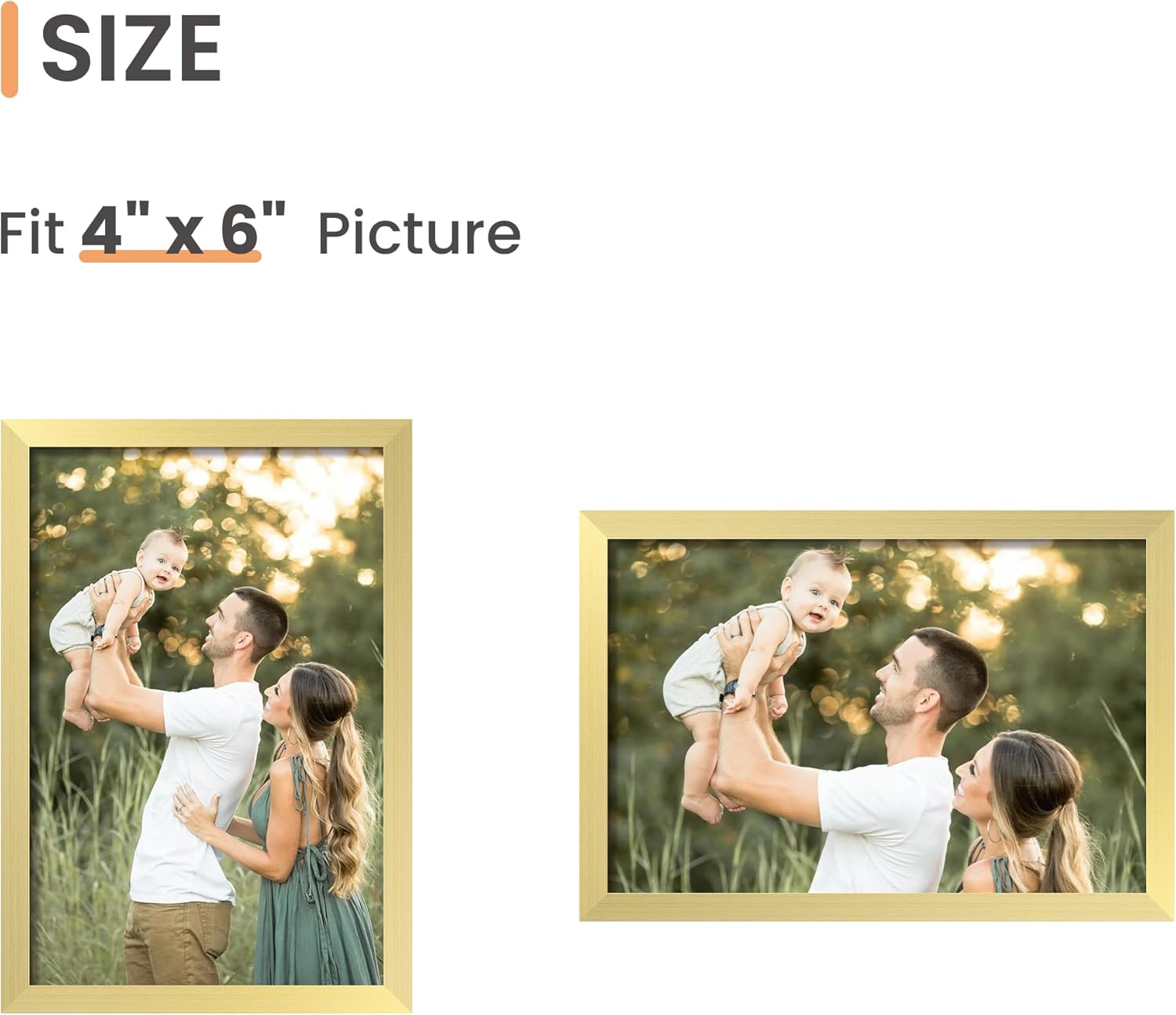- Size: One wall gold photo frame fits 4x6 photo without mat, can be hung horizontally or vertically.