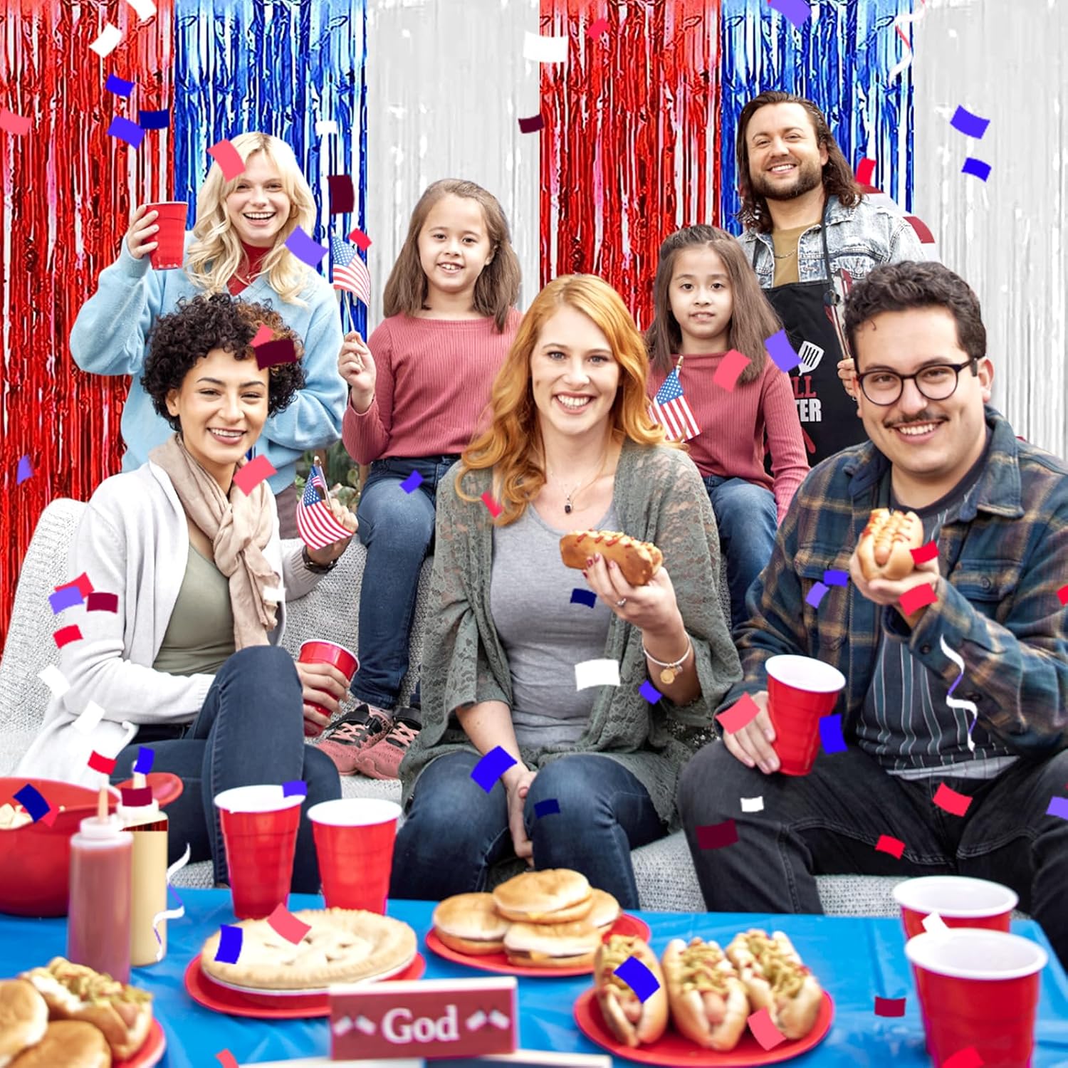 3 Pack White Blue Red Foil Fringe Curtain Backdrop, 3.28Ft x 8.2Ft Metallic Tinsel Foil Fringe Streamer Curtains for Photo Booth, Mother's Day, Easter, Birthday, Wedding Party Decorations