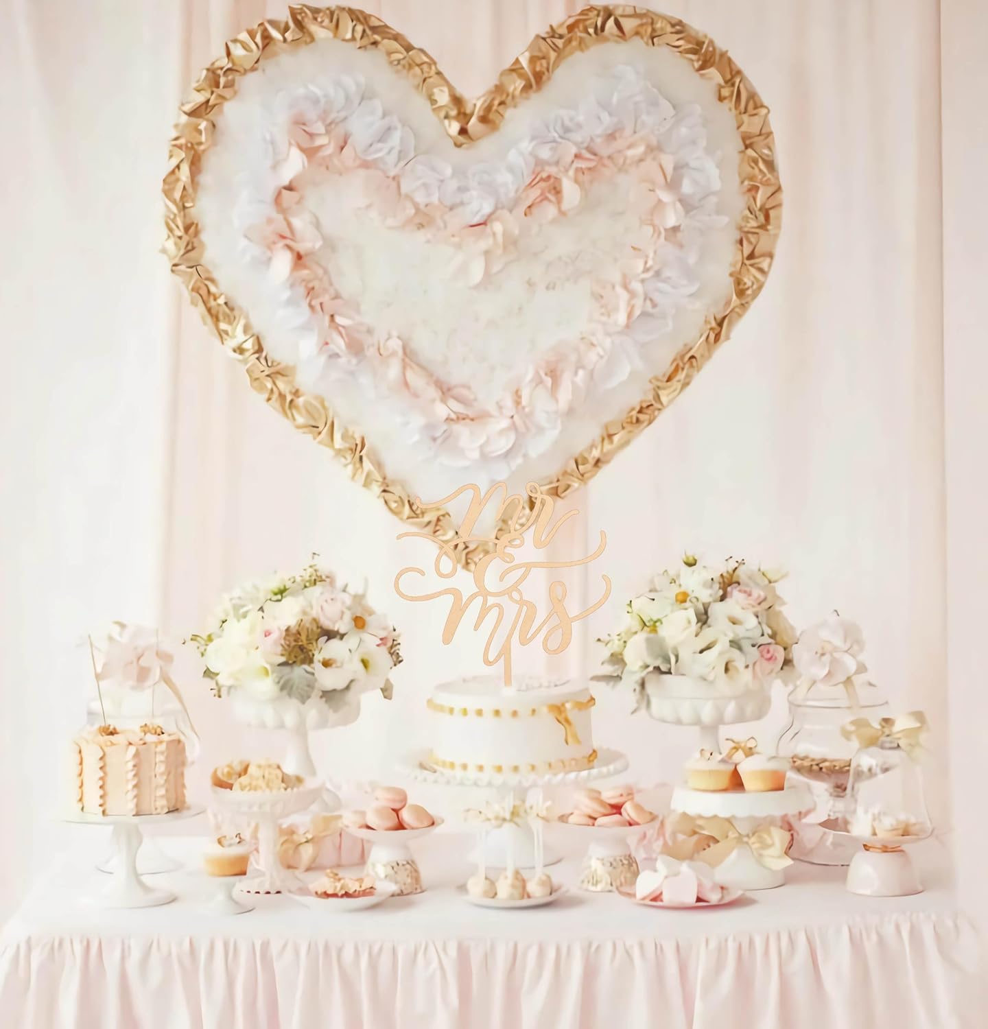 - MR AND MRS WEDDING CAKE TOPPER - Our flagship design Mr and Miss cake topper uses a wooden structure in a rustic romantic freehand brushwork style to reveal the bride and groom important moments. This mr & mrs cake topper is an important supplement to the cake, perfectly romance and sincere love into the wedding party. The full sense of luxury and festivity allows everyone to remember the Wedding Party without leaving any regrets