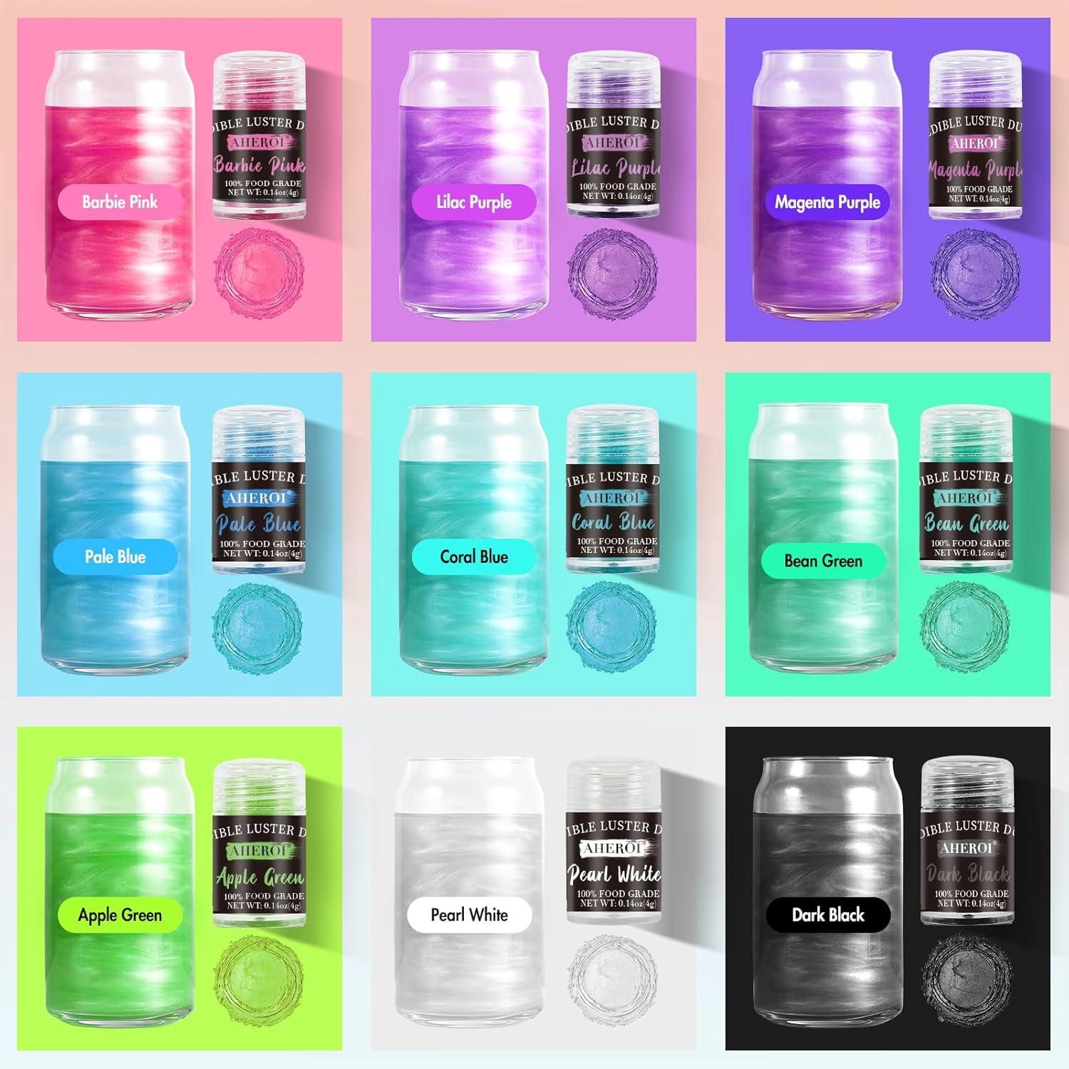 - 🍷【HIGH QUALITY&EASY TO USE】The luster dust edible set has excellent adhesion on both wet and dry media, they have good coloring effects. The powder glitter is very delicate and easy to stir up. You can mix edible luster dust directly with the drink to make a star drink: mix them with vodka, gently stir to get the magic color! You can also sprinkle it directly on the cake for decoration, or you can apply it directly to the mould with a brush to make wonderful chocolate.