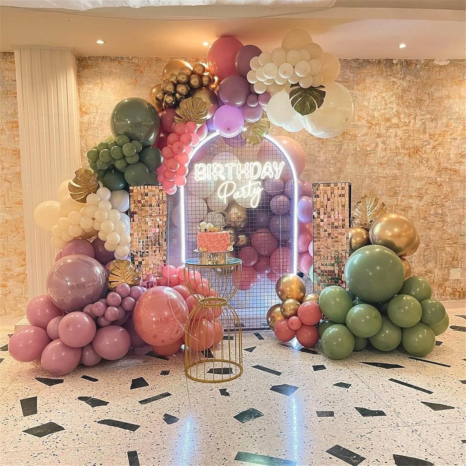 - π Enjoy Party Time - Our dusty sage green pink latex balloons are suitable for many indoor events and outdoor occasions and can add atmosphere to your party. It is the perfect decoration for happy occasions or celebratory moments such as women girls jungle birthday, baby shower, carnival party, wedding, bridal shower, and other party decoration supplies. Makes your party attractive and romantic.