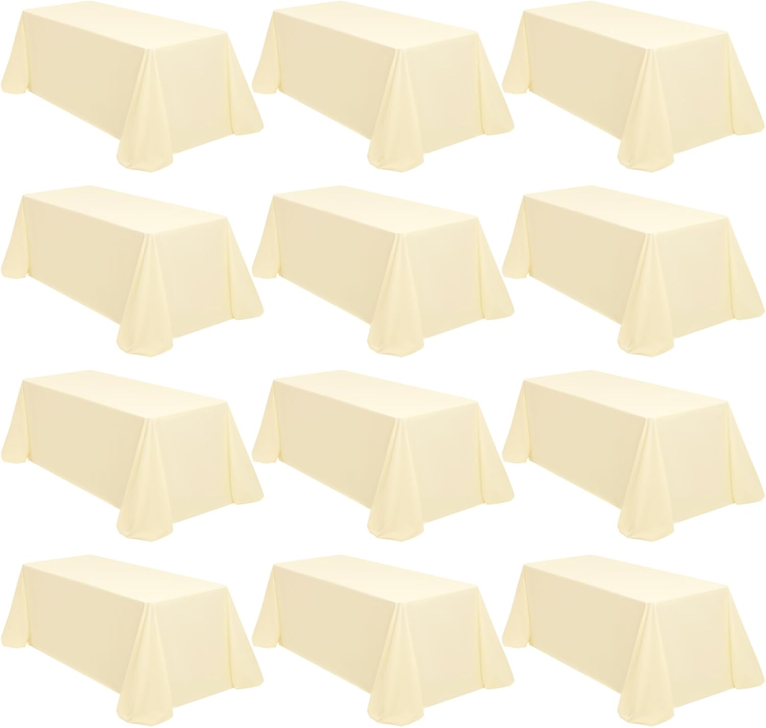 12 Packs 90 x 132 Inch Tablecloth, Beige Polyester Table Cloth for 6ft Rectangle Tables, Washable Fabric TableCover for Wedding Banquets Parties Buffet Dining Table