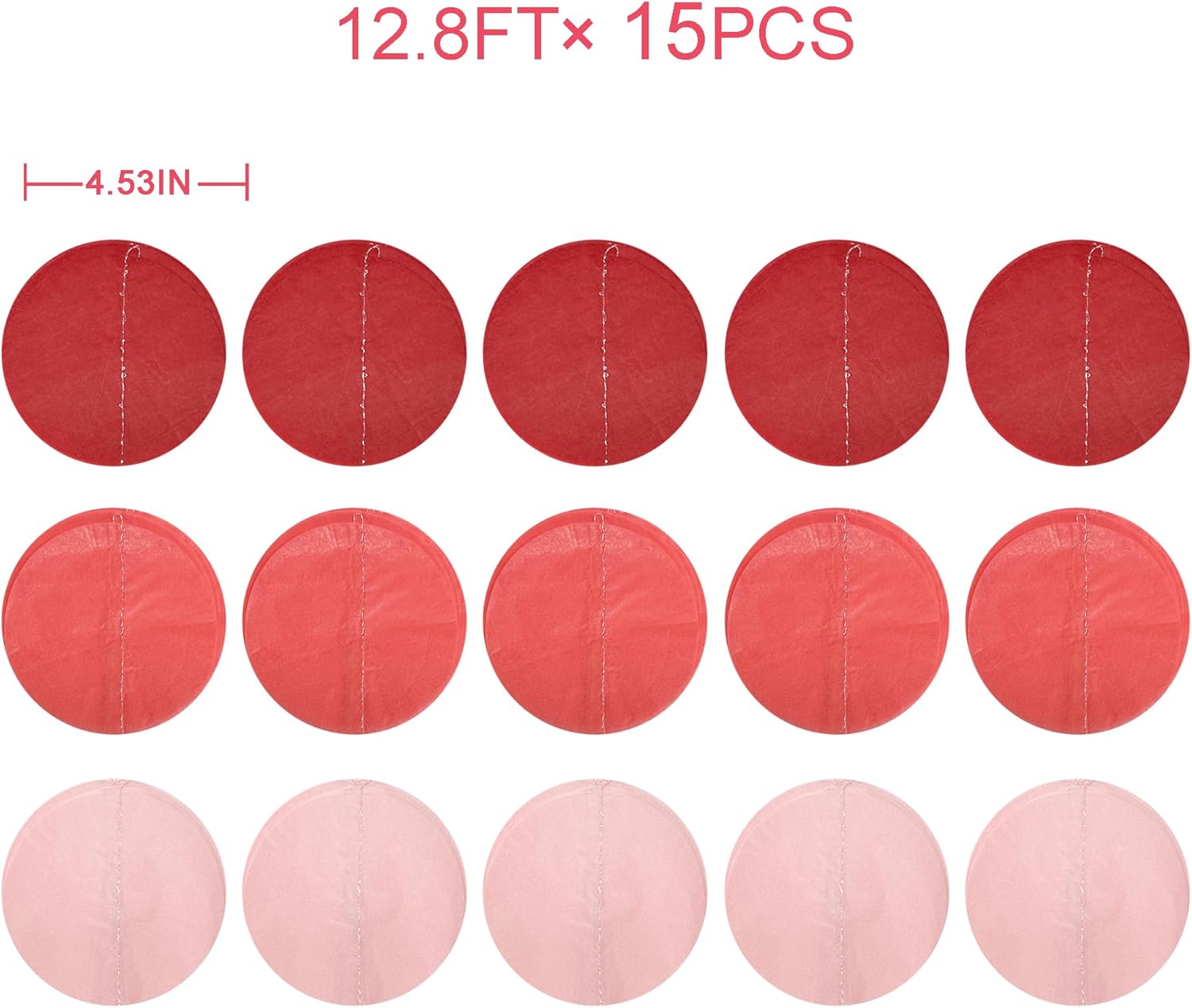 - 🔴ENVIRONMENTAL MATERIAL-Our gradient red big circle dot streamer garland are made of high quality tissue paper,carefully hand-made and machine-sewn together with thread.durable and reusable.Unroll & unwrap the tissue paper garland carefully. Due to delicate nature of thread, may tangle.