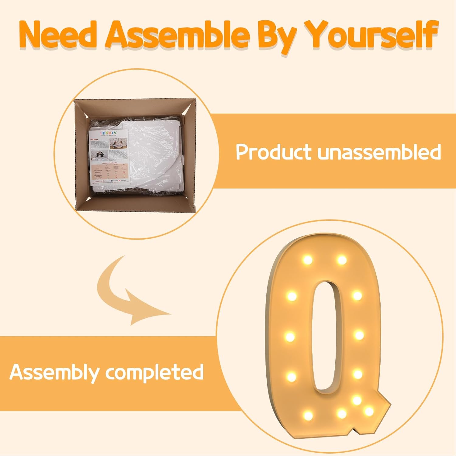 - Assembly Required: Our large marquee letters is made from foam board and easy to assemble with our splicing mode. Just follow the numbered instructions to align and insert the bottom plate, and reinforce it with a hot glue gun. Then, you're done!