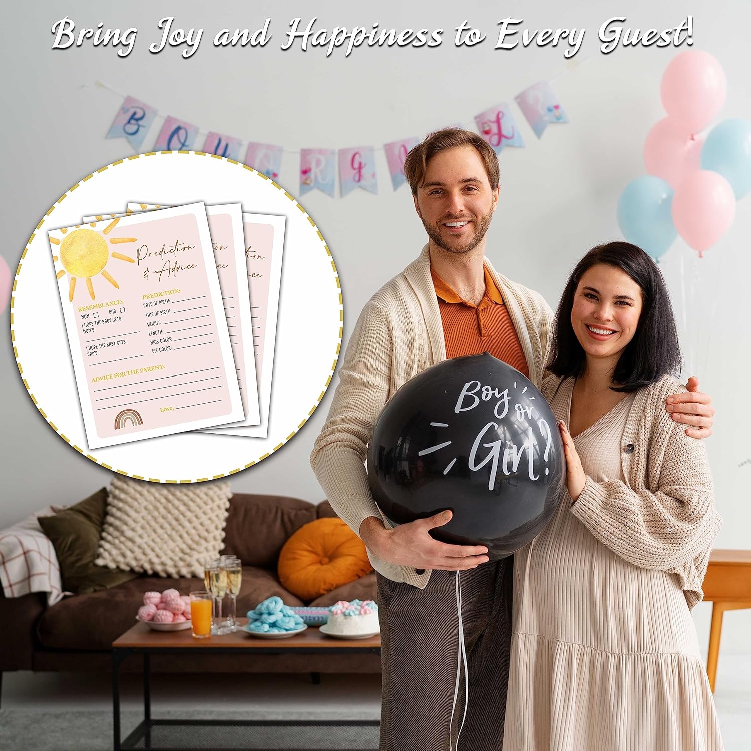 Boho Sunshine 30 Baby Predictions and Advice Cards, Gender Reveal Party Supplies Favors (5"x7") - D02