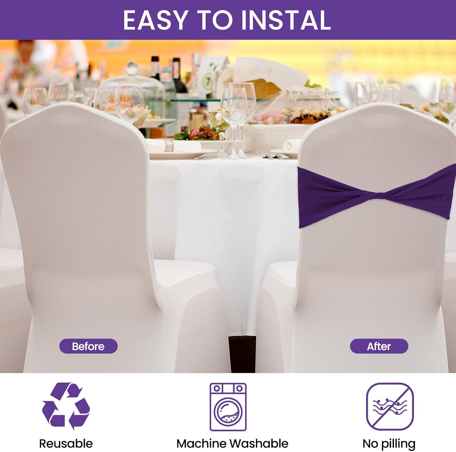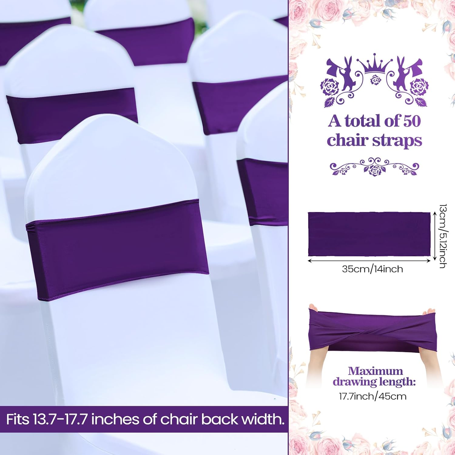 Kinlop 50 Pcs Spandex Chair Sashes Bows Chair Bands Slider Sashes for Covers Elastic Bands Ties Without Buckle Decorations for Wedding Party Events Ceremony Birthday(Purple)