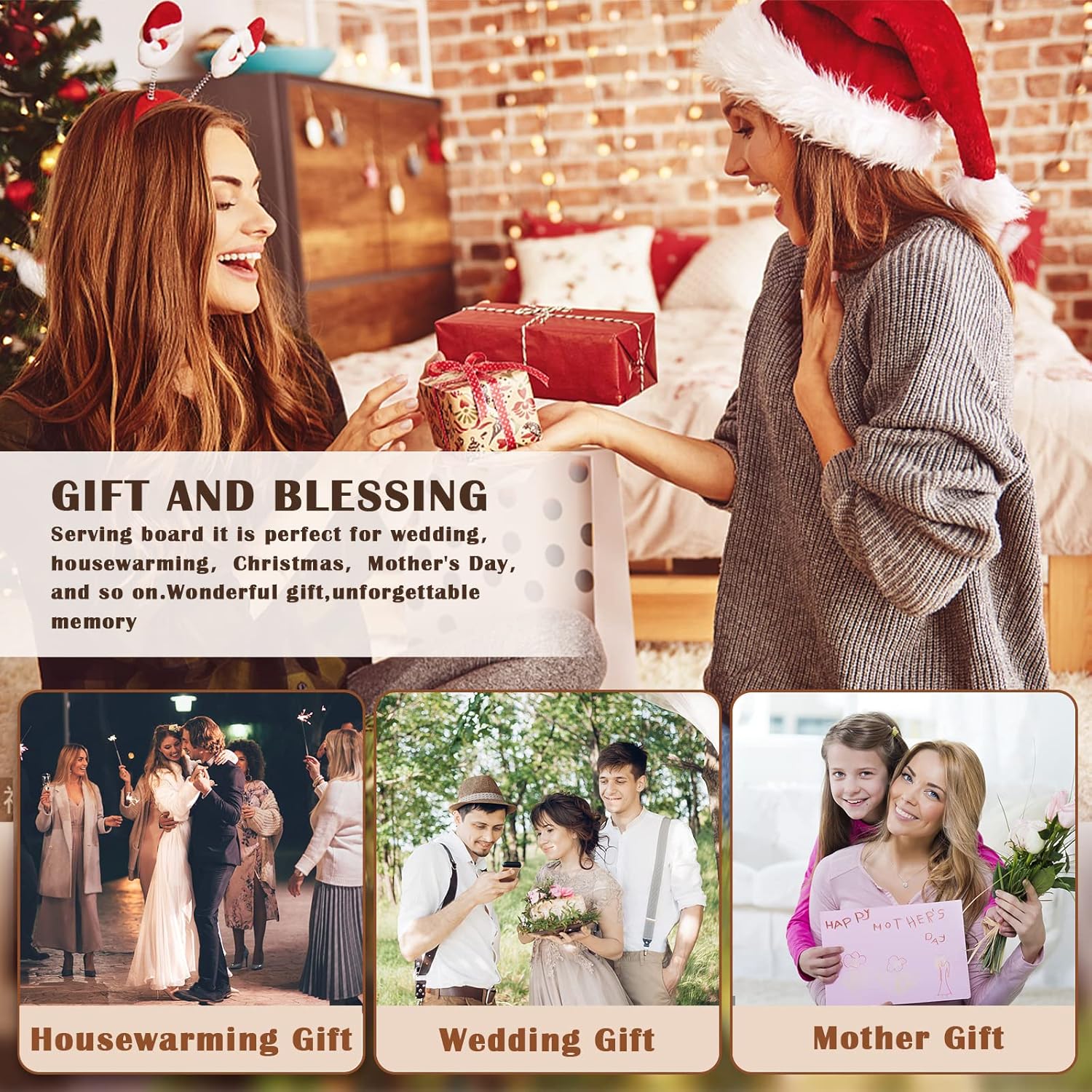 - Widely Occasions: These kitchen cutting boards are perfect for kitchen slicing and dicing, cutting your meat, fruits and vegetables without any trouble efficiently and cleanly, and also can be served for cheese, bread, steaks or charcuterie; Ideal gifts to give them to your friends on Thanksgiving, Christmas, Mother's Day, housewarming, weddings and other occasions.