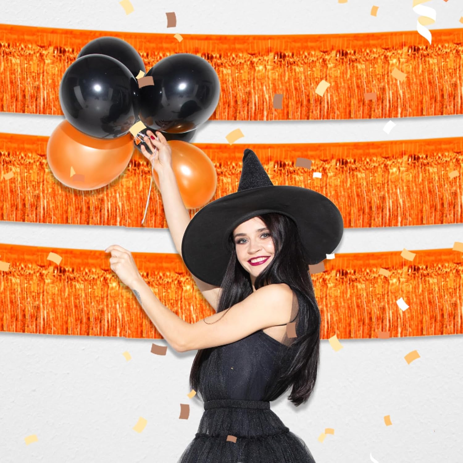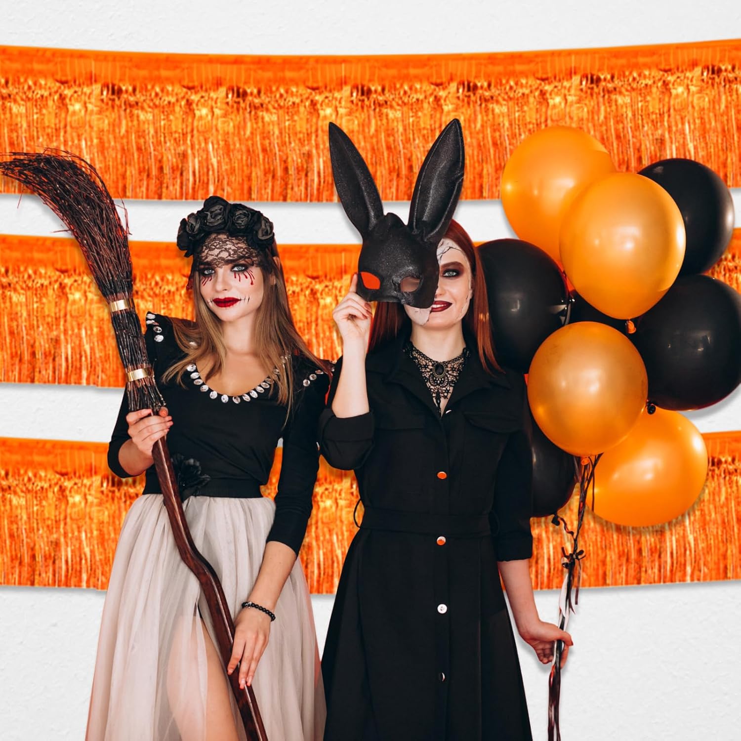 6 Pack 10 Feet Orange Foil Fringe Garland Metallic Tinsel Streamers Banner Wall Hanging Curtain Backdrop for Parade Floats, Birthday, Graduate, Mother's Day, Wedding Party Decoration