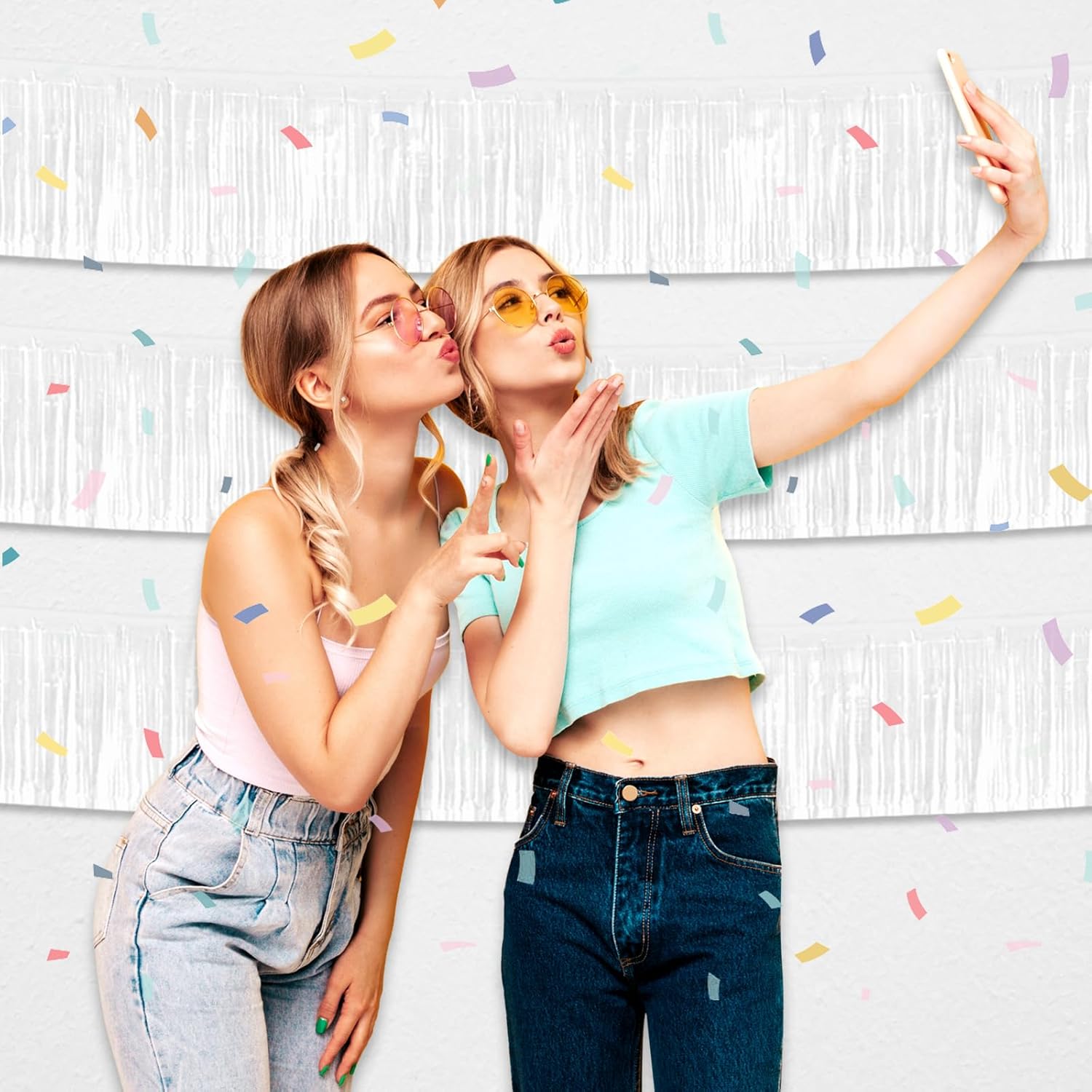 4 Pack 10 Feet White Foil Fringe Garland Metallic Tinsel Streamers Banner Wall Hanging Curtain Backdrop for Parade Floats, Wedding, Graduate, Mother's Day, Birthday Party Decoration