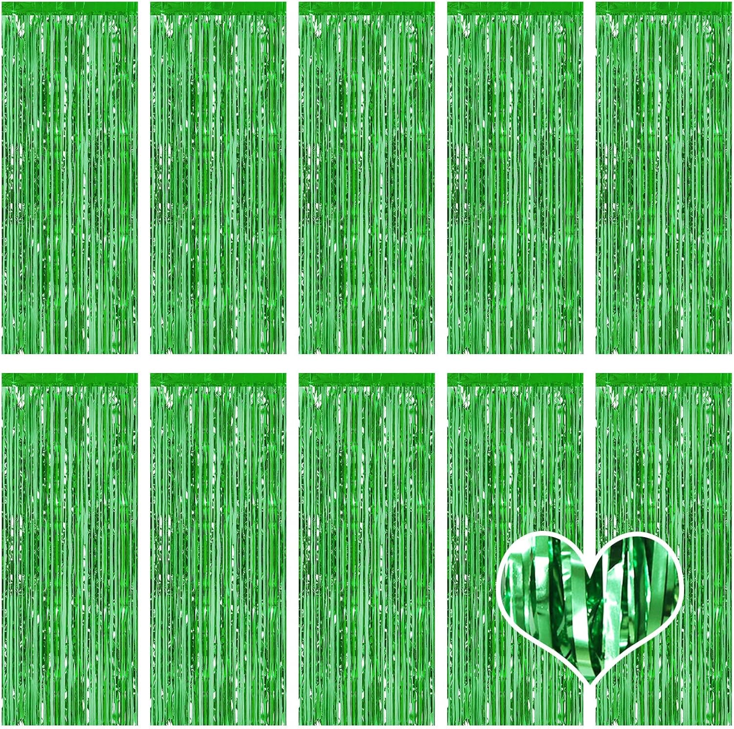 10 Pack Green Backdrop Curtain 3.2ft x 8.2ft Metallic Tinsel Foil Fringe Curtains Photo Booth Background for Birthday Party Decoration Baby Shower Engagement Wedding Christmas Decoration (Green)