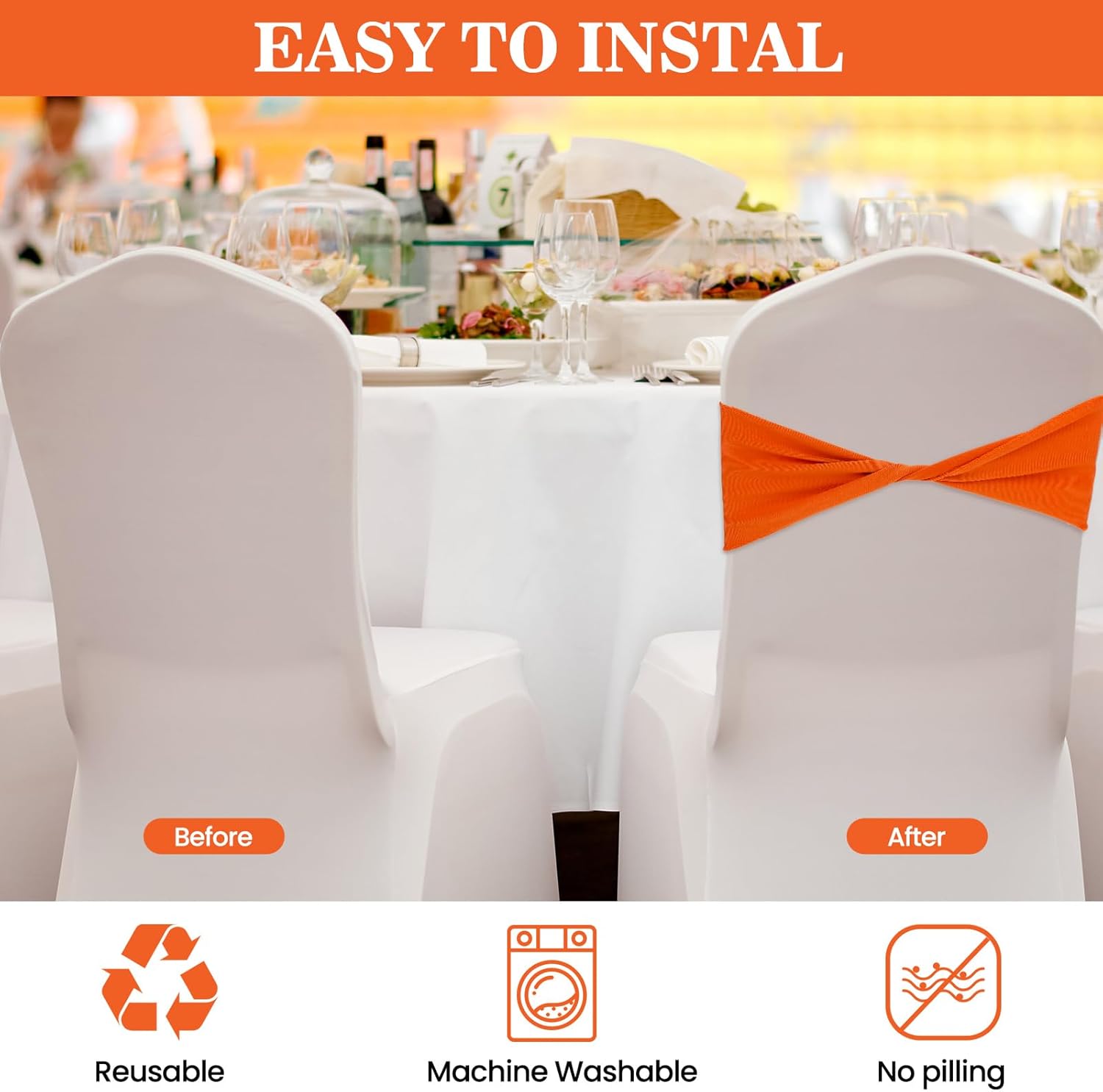 Kinlop 50 Pcs Spandex Chair Sashes Bows Chair Bands Slider Sashes for Covers Elastic Bands Ties Without Buckle Decorations for Wedding Party Events Ceremony Birthday(Orange)
