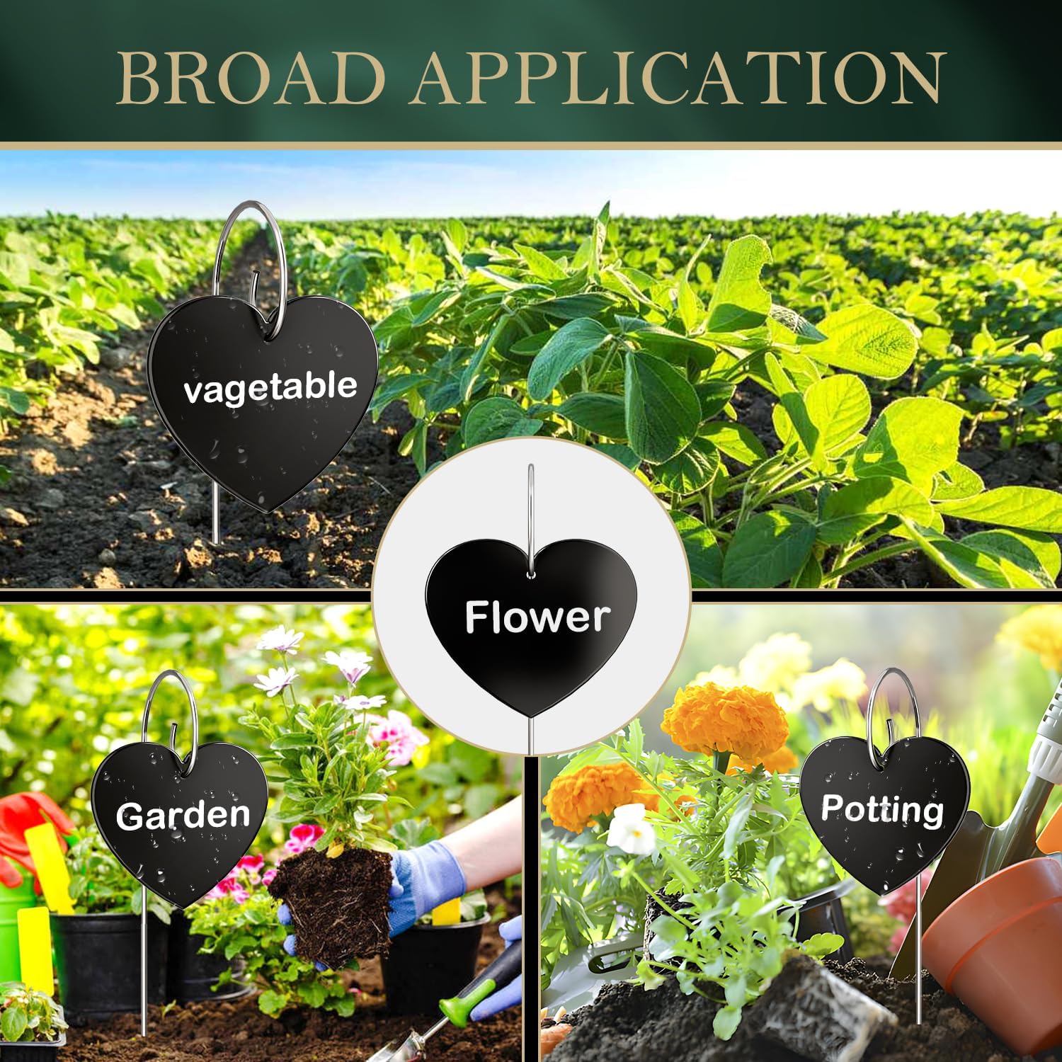30-Pack Iron Metal Heart Shaped Garden Markers Weatherproof Metal Plant Labels Large Planting Seedling Stake Signs, for Seedlings Herbs Vegetable Greenhouse Gifts with White Marker Pen Labels