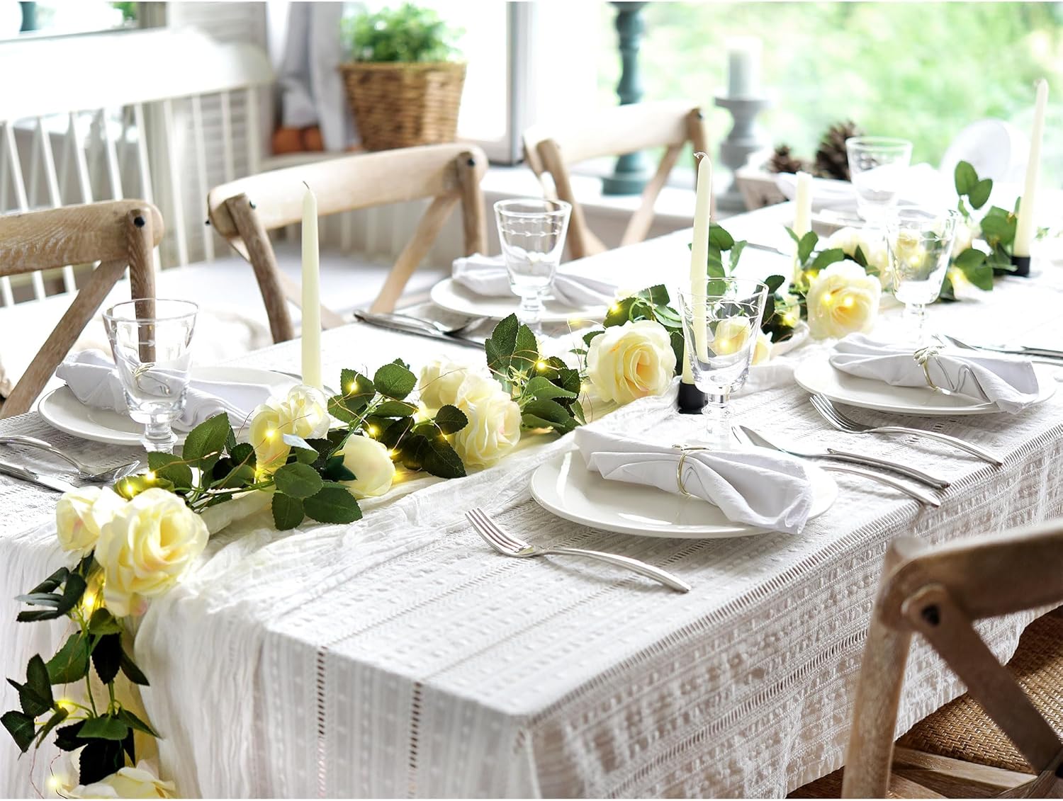 - Outdoor Events: For outdoor events such as garden parties, outdoor weddings or evening receptions, the combination of white rose garlands and string lights creates a magical atmosphere. Themed events: These garlands can be incorporated into various themed events such as fairy tale parties, garden themed gatherings, or vintage inspired celebrations
