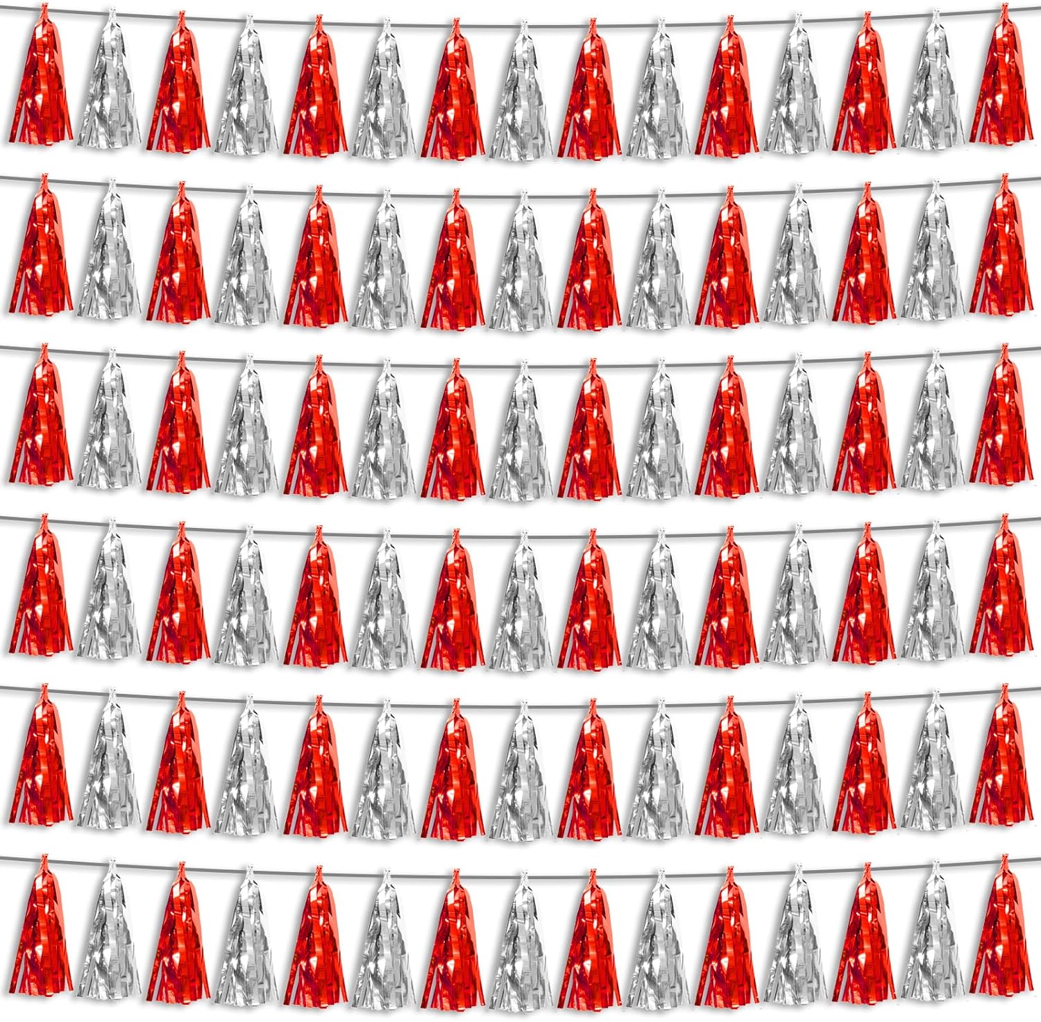 - 【Perfect Party Decoration】The Red Silver tinsel garlands are designed in a metallic Fringe, bright, and beautiful, at the same time, they shine in the sun, and these gorgeous tassel garlands create a wonderful backdrop or centerpiece for your party space. and bring you, your family, and your friend's good Visual effects. your party many emotional and touching moments where a lot of pictures will be taken and everybody will have a wonderful time together.