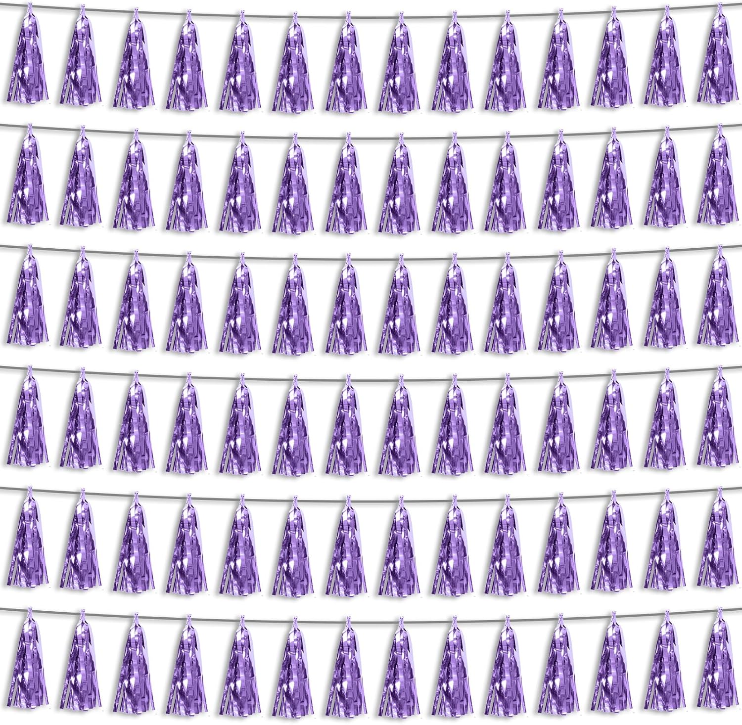 6P Light Purple Foil Fringe Metallic Tassel Streamers Banner Tassel Garland for Parade Floats, Bachelorette, Wedding, Birthday, Graduation, Christmas, Bridal/Baby Shower Party Decorations