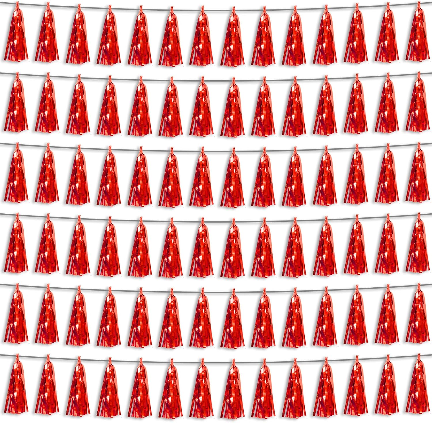 6P Red Foil Fringe Metallic Tassel Streamers Banner Tassel Garland for Parade Floats, Bachelorette, Wedding, Birthday, Graduation, Christmas, Bridal/Baby Shower Party Decorations