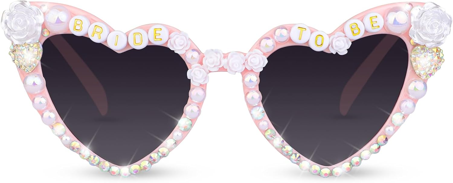 - 👰👰【ELEGANT BRIDE DESIGN】- These heart sunglasses bachelorette party are adorned with dazzling and gold "BRIDE TO BE" lettering, symbolizing timeless love and happiness. Once you put them on, you'll instantly become the center of attention at bachelorette and bride to be parties. Radiate elegance with these bride sunglasses!