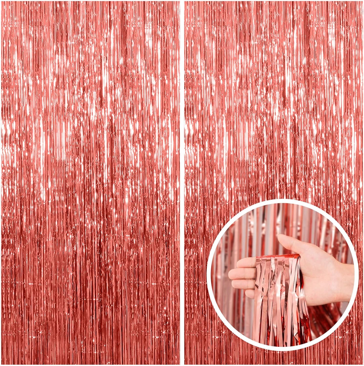 2 Pack Rose Gold Fringe Curtain Backdrop Birthday Bachelorette Party Decorations Metallic Tinsel Streamers Foil Backdrop Christmas Graduation Wedding New Year Party Decorations