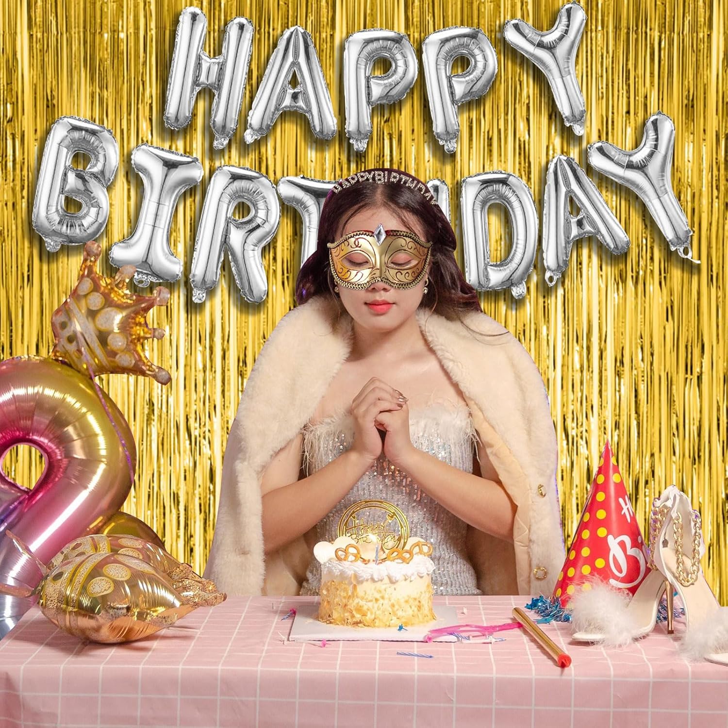 3 Pack Gold Fringe Backdrop Curtain Tinsel Party Streamers Birthday Party Decorations New Year Photo Booth Backdrop Halloween Christmas Graduation Bachelorette Theme Party Decorations