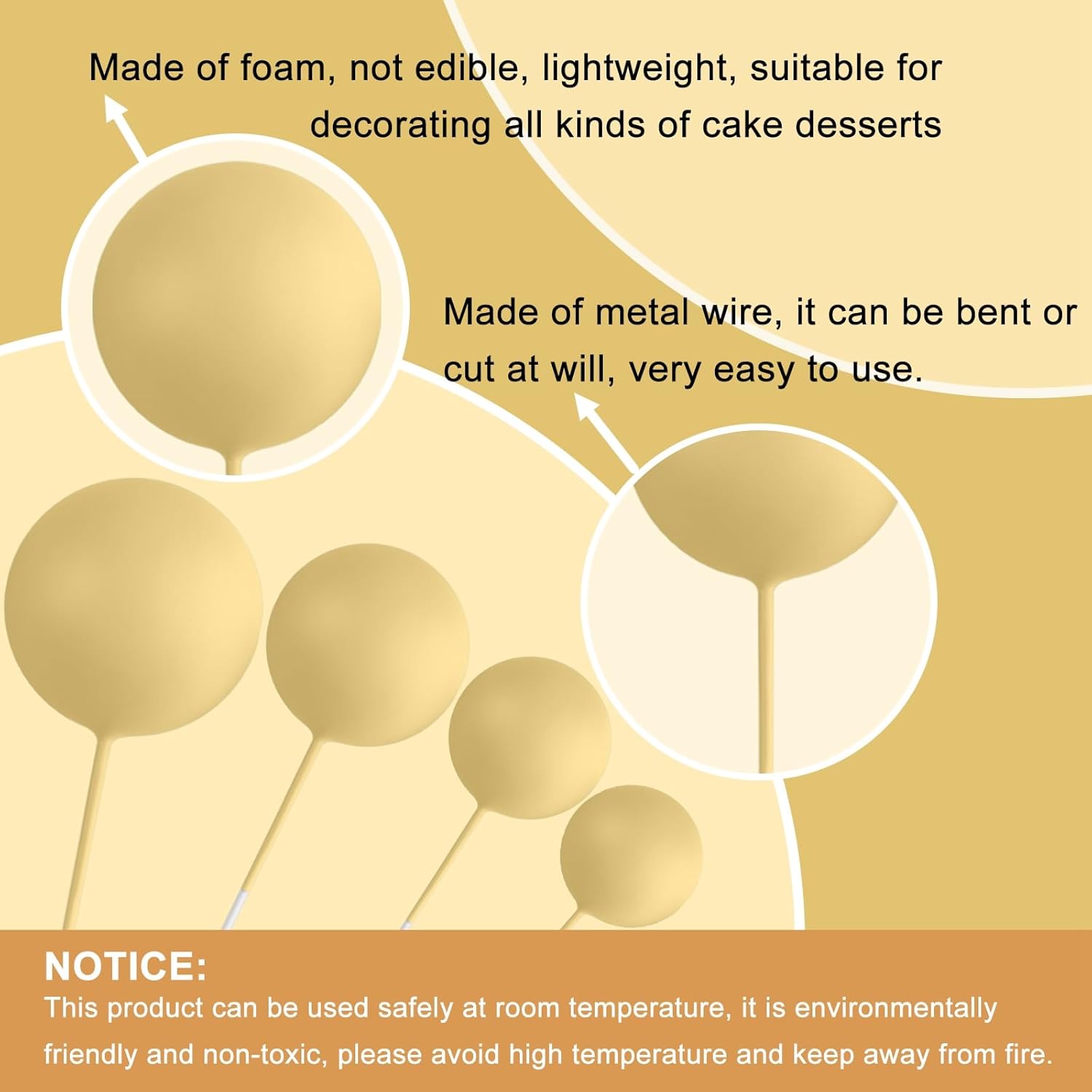ASTARON 32 Pcs Ball Cake Topper Decorations Mini Balloons Cake Topper Sticks Foam Balls Cake Picks Cake Topper Balls Cake Decorations for Wedding Party Birthday Cake Decorations (Yellow Gold)